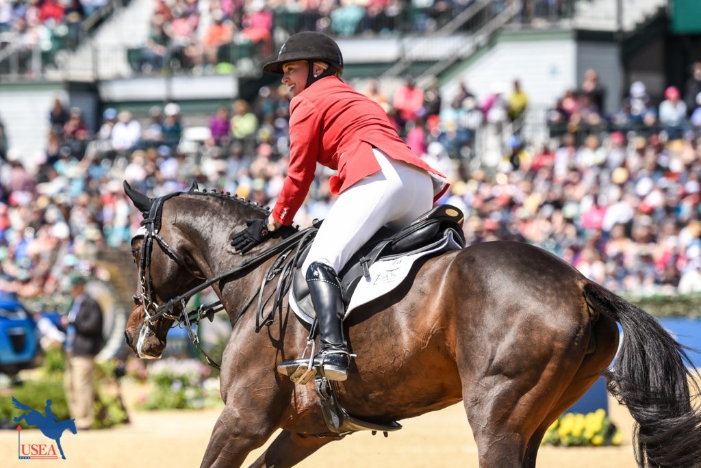 Lynn Symansky and The Donner Syndicate’s 15-year-old Thoroughbred gelding Donner (Gorky Park x Smart Jane) completed the weekend in sixth place on a score of 35.3 after incurring four faults in show jumping today. Originally tied with Townend and MHS King Joules, Symansky and Donner finished closer to the optimum time on cross-country yesterday, so when both pairs dropped a single rail this afternoon, optimum time served to break the tie.