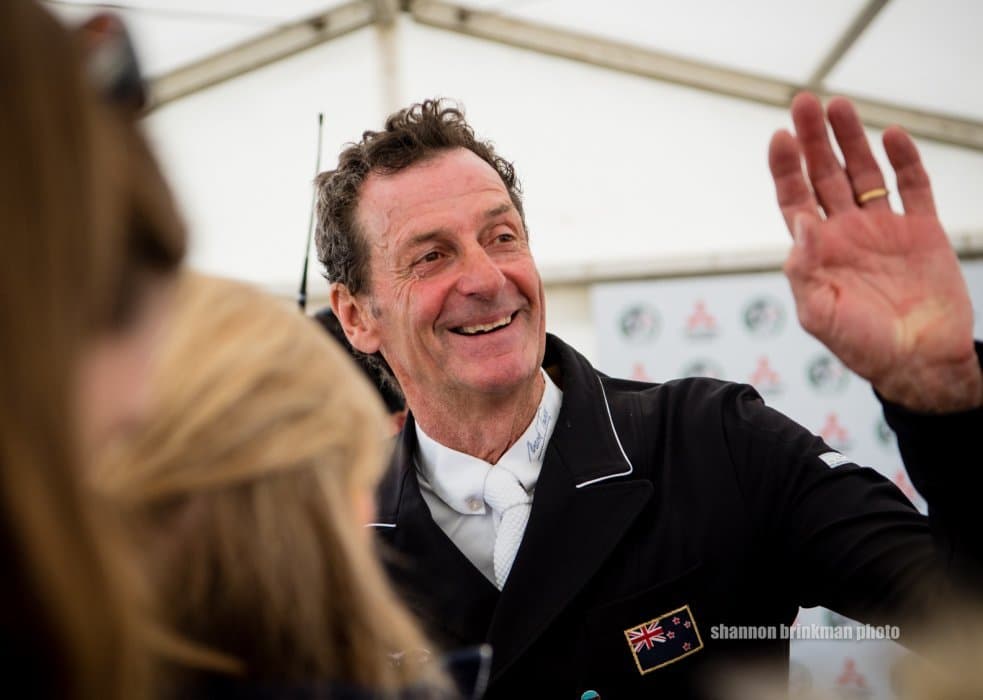 Mark Todd, who first competed here over 30 years ago, briefly took the lead on another flashy grey, Kiltubrid Rhapsody, on a score of 23.4. He finished the day sitting in the second-placed chair at the press conference, which this year was conducted in front of the public in the Mitsubishi Chatzone.