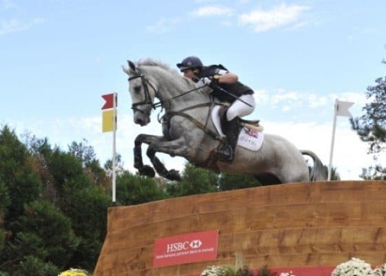 Nicholson’s hopes were then placed on the 9-year-old Avebury, 4th after Dressage, but the young grey, who was going well and confidently, missed the jump out of the last water (fence 27) and tripped, firing his rider onto the ground. Nicholson had to have stitches for a cut lip.