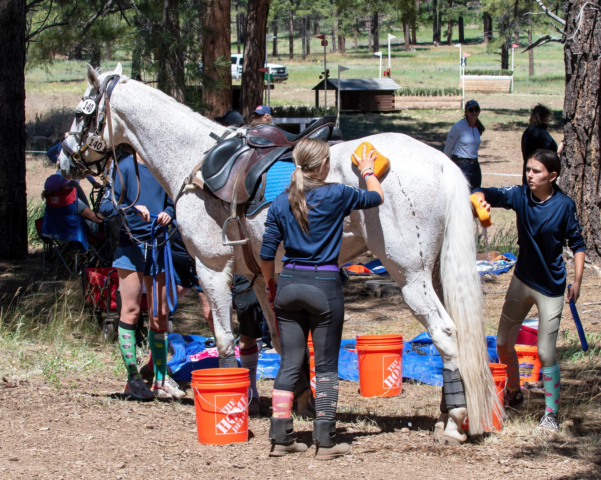 “Last year we were so lucky to team up with another barn because we didn’t have much help except my mom and my student’s mom,” she said. “This year we were more prepared in numbers of people ready to start cooling horses as they entered the vet box and making sure Lance and the other horses at our barn competing in the Classic were being cooled and walked in preparation for their recheck by the vet to see if they were able to go on to cross-country.”