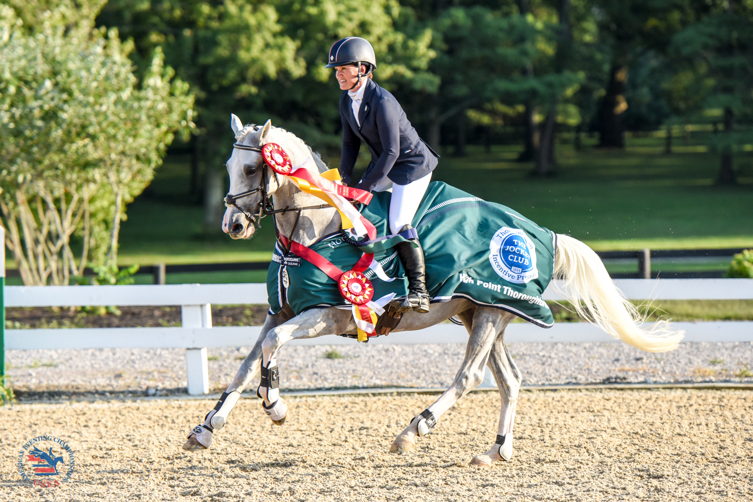 Rebecca Hunt and her own 7-year-old Thoroughbred mare Snowflake Lane (Dunkirk x Correoso) jumped double clear to move up from fourth to second and take home the red ribbon.