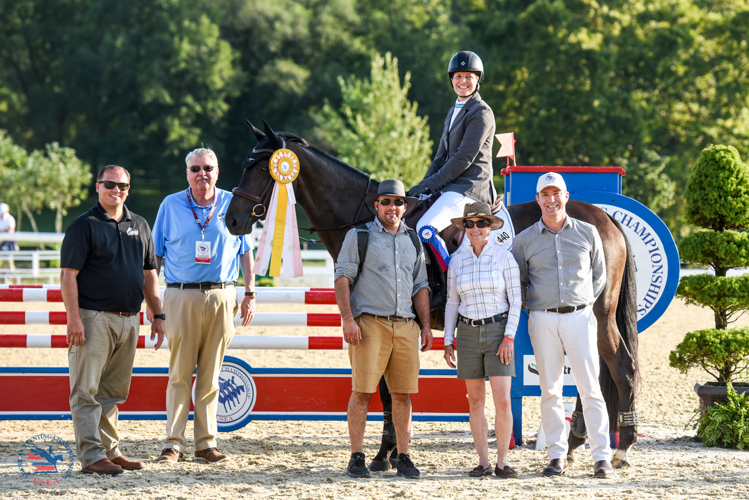 Abigail Mazzatta and Samantha Lendl’s Woodstock's Little Nev (Luftikus x One Lucky One), a 12-year-old Thoroughbred gelding, took home top honors in the Junior Training division after their double clear round bumped them up the leaderboard from second place into the winning position.