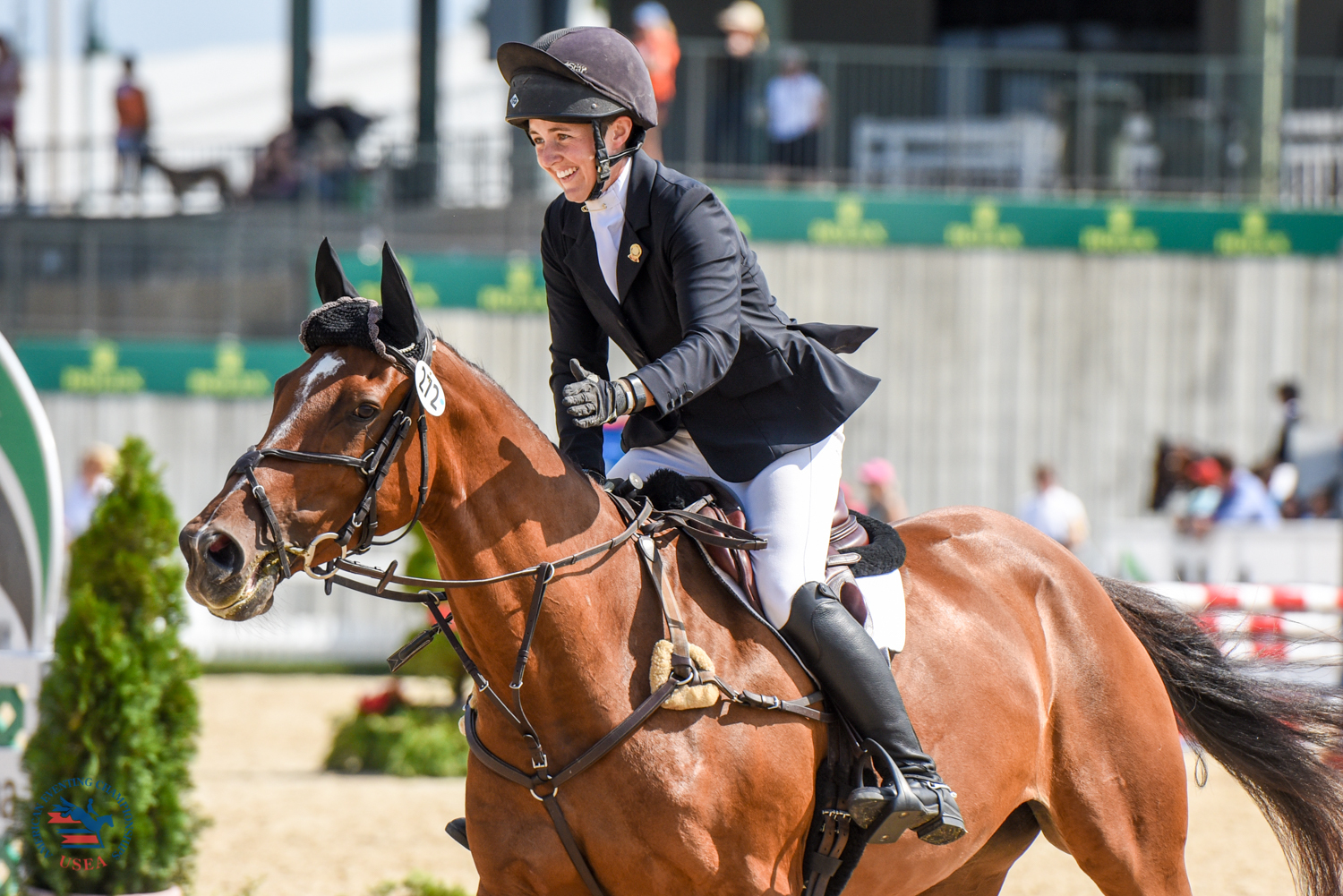 “He was amazing,” she said of the 8-year-old Irish Sport Horse gelding, who she imported from Ireland two years ago. “I definitely didn’t expect him to take the atmosphere as well as he did considering it’s his first championship in the states. He went in the Rolex Stadium as chill as can be and jumped around great.”