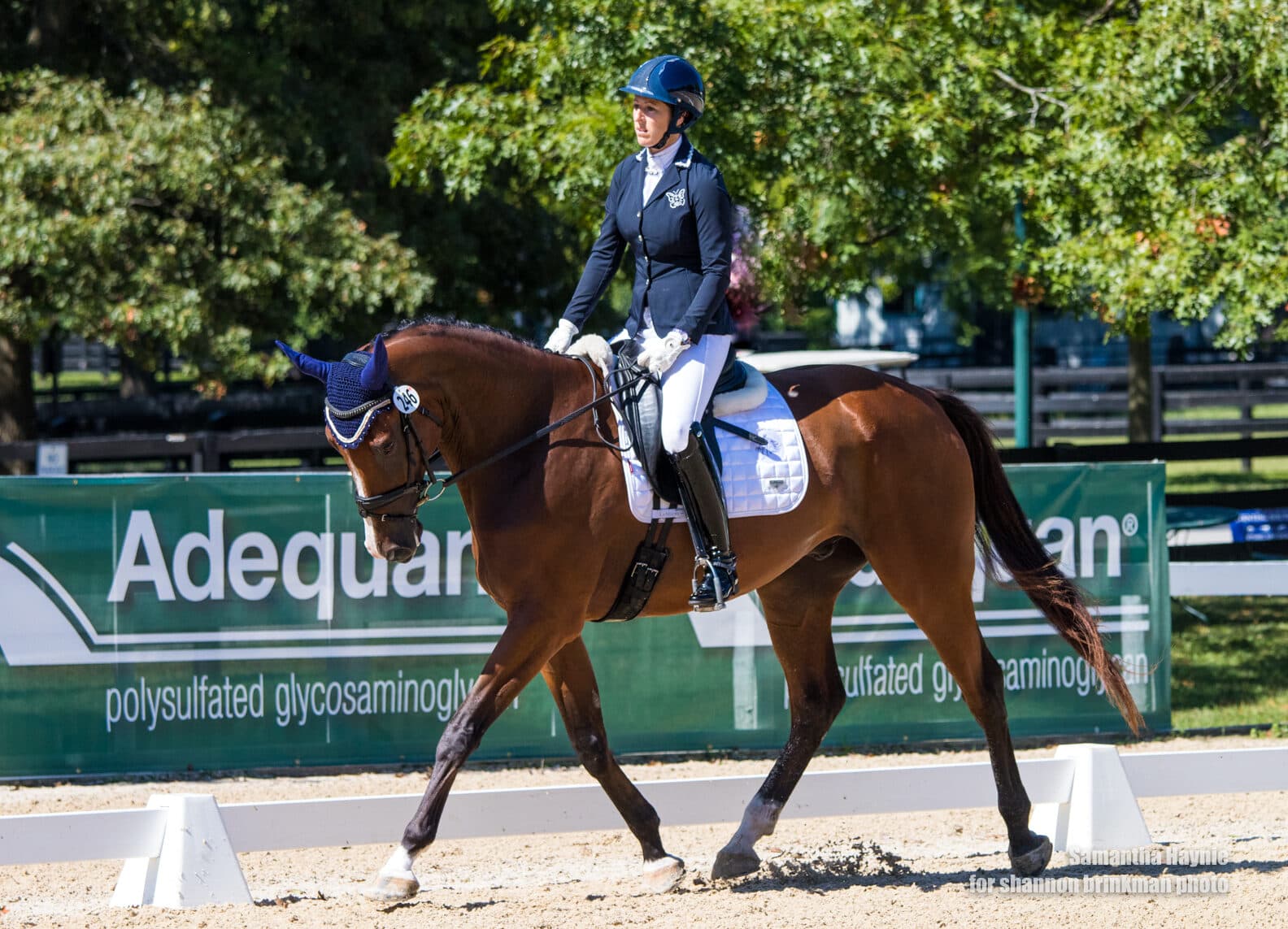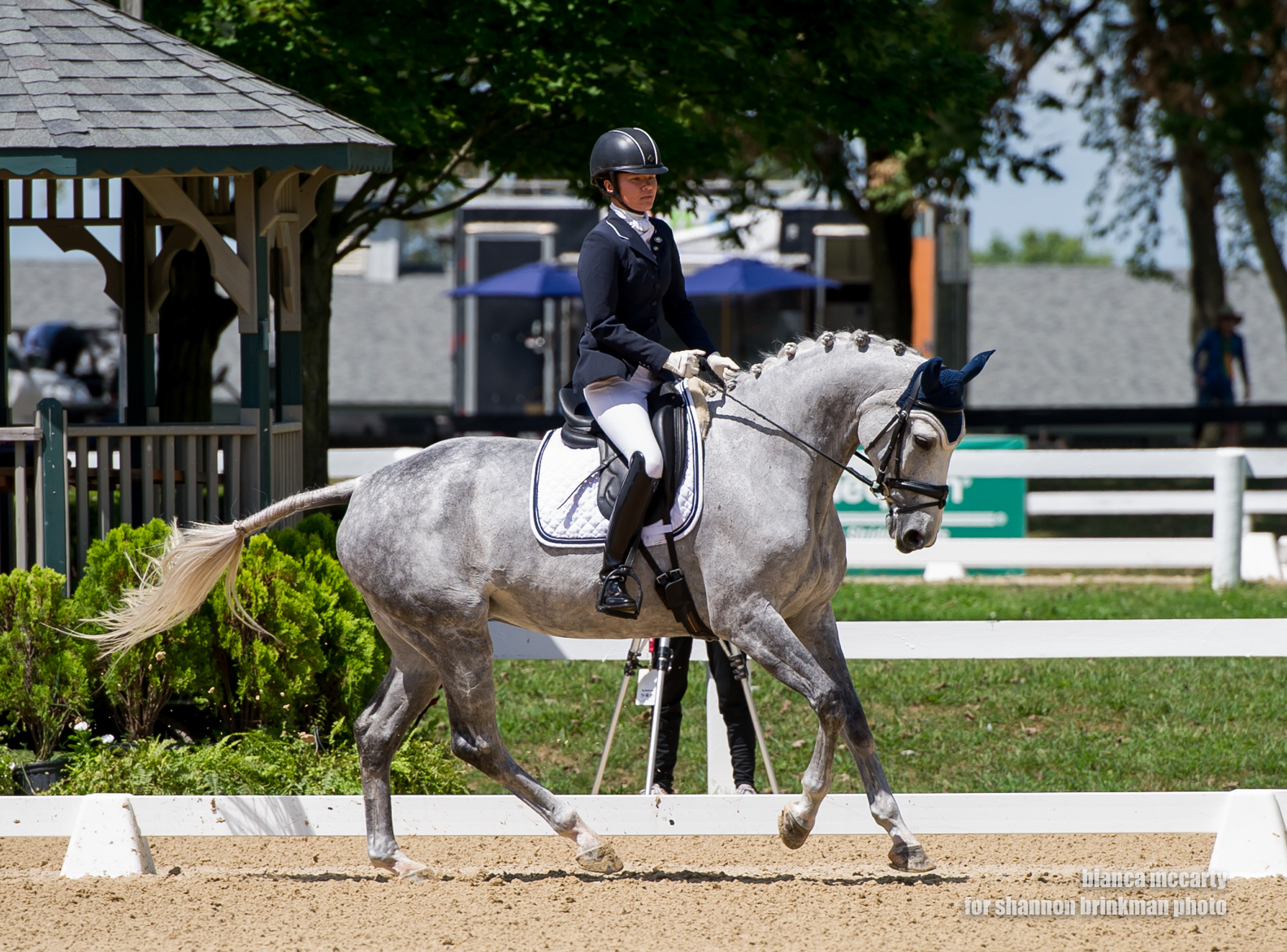 Reflektion’s Rio (Reggasoni x L.A. Baltic Reflektion), Lynn Roberts’ 12-year-old Hanoverian gelding is a pure dressage horse, but with Madeline Backus he has turned his focus to eventing. “He’s really good at dressage, but he prefers the jumping – we event to keep him happy and he loves it,” said Backus about her test that scored a 27.0 to lead the Training Horse Championship. “I was really pleased with his test today. He stayed focused, which doesn’t always happen, and he was just really rideable. He put in a really nice test I couldn’t be happier.”