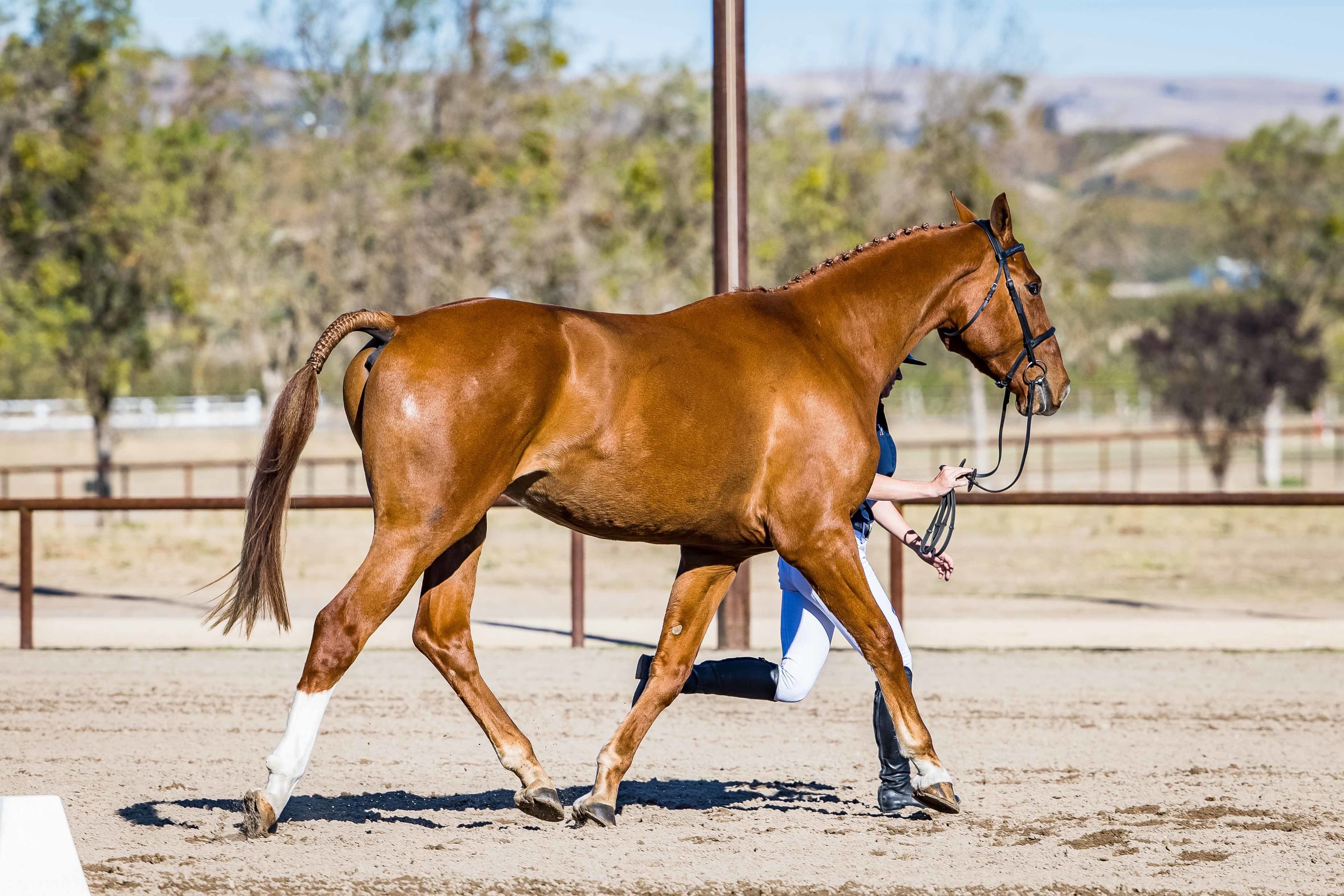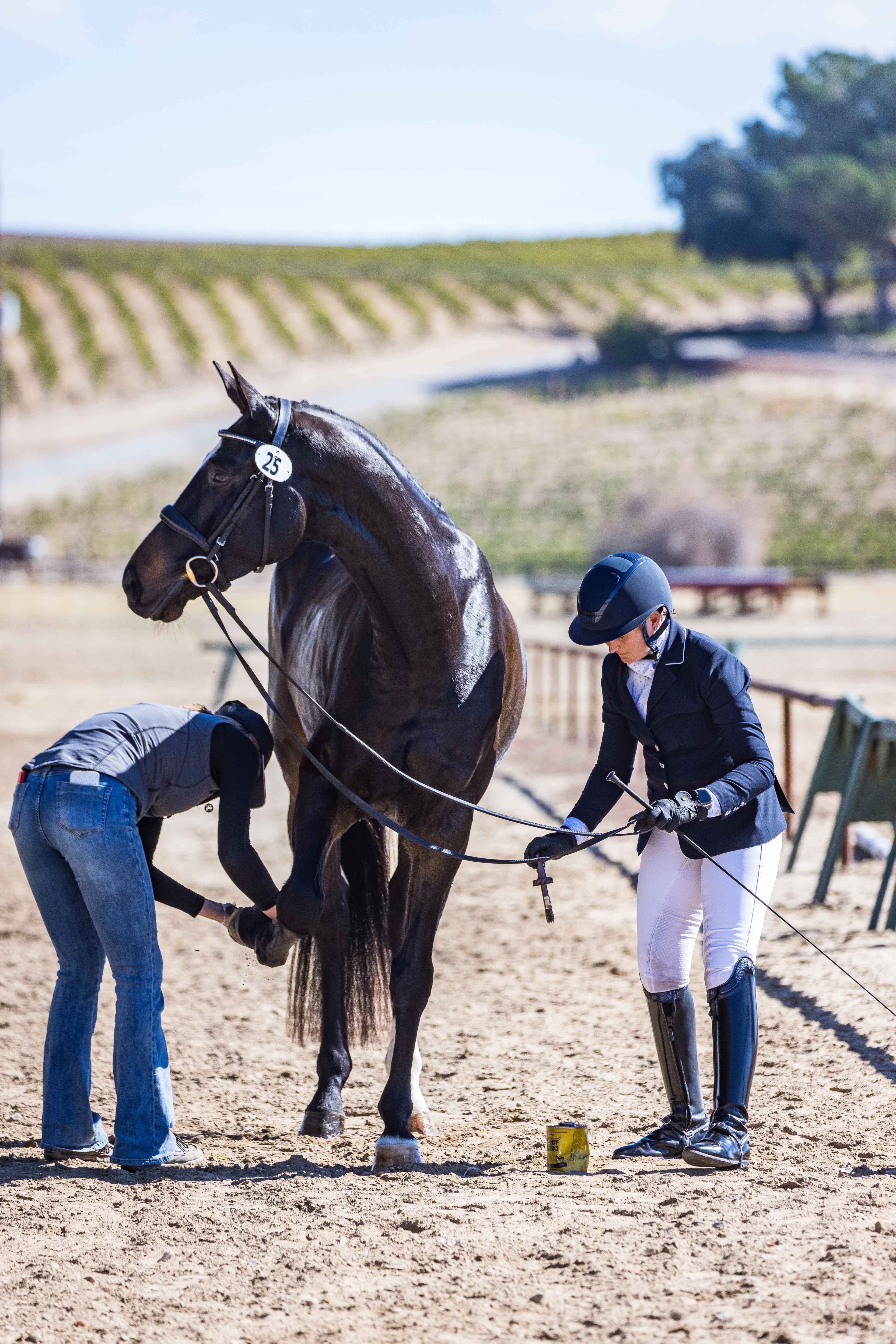 The beginning of the day consisted of the dressage and conformation portion of the competition for the Dutta Corp. USEA YEH West Coast 4- and 5-year old Championships. The overnight leader in the 5-year-old Championship is Cellar Farm Corp.’s, Lex D (Freeman VDL x Berber) handled by Amber Birtcil.