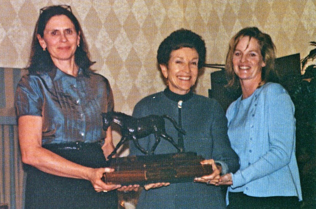 The Casar Memorial Trophy being awarded to Winsome Adante for the first time. Linda Wachmeister, Loris Henry and Kim Vinoski (Severson) pictured. USEA Archives Photo.