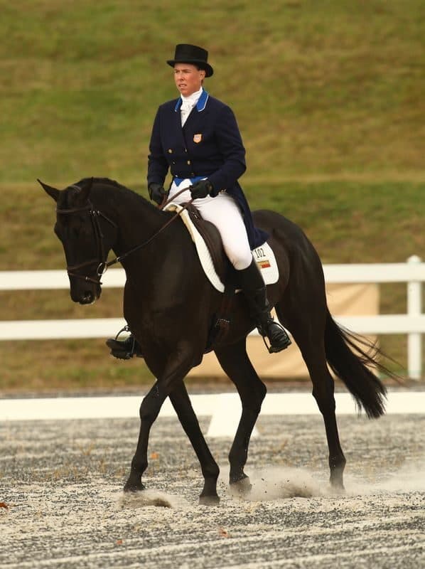 Olympian Amy Tryon partnered with Tim & Kathryn Sullivan's 8-year-old Thoroughbred gelding Coal Creek to take the lead in the CCI3* with a 47.0. Twenty-seven of the fifty-three riders in the CCI3* performed their tests today, with the rest to compete tomorrow, along with the rest of the field in the CCI2* division. To see the complete results for Day One, click here. (Photo by Anthony Trollope/stockimageservices.com)
