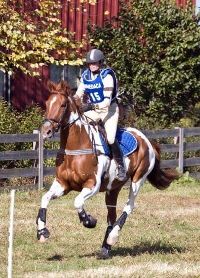 The towering 17.3-hand Paint gelding doesn’t bear much resemblance to his 13.2-hand grand dam. “Funny when you see how big he is, he looks like a sport horse with rich bloodlines!” said Dawn. “The whole family seemed to be able to jump no matter what size they were. I waited and broke Major at 3 1/2 and took it slow because of his size. The only time you get a sense of his age is in stadium, when he can be a bit spooky. Moving him up to Preliminary helped because it made him pay attention more. He is fun and kind hearted and an easy keeper (that’s the pony part)!”