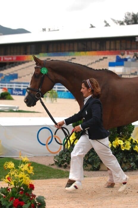 The U.S. Olympic Eventing team passed the first horse inspection, looking fit and ready to go! MacKinlaigh and Gina Miles (pictured), as well as the rest of the team, trotted down the jogging lane in fine form. Shannon Brinkman photo.