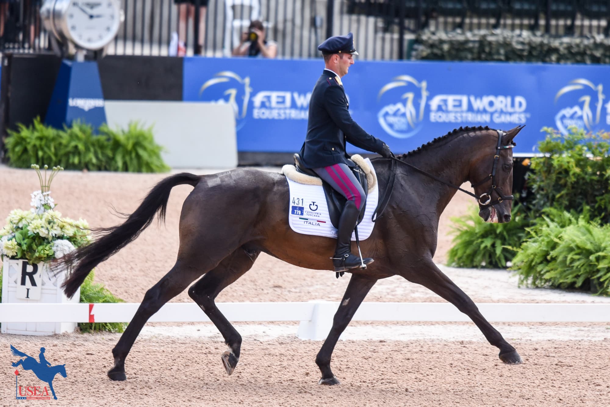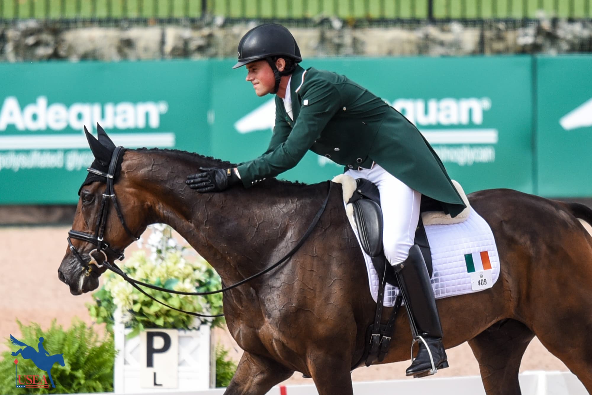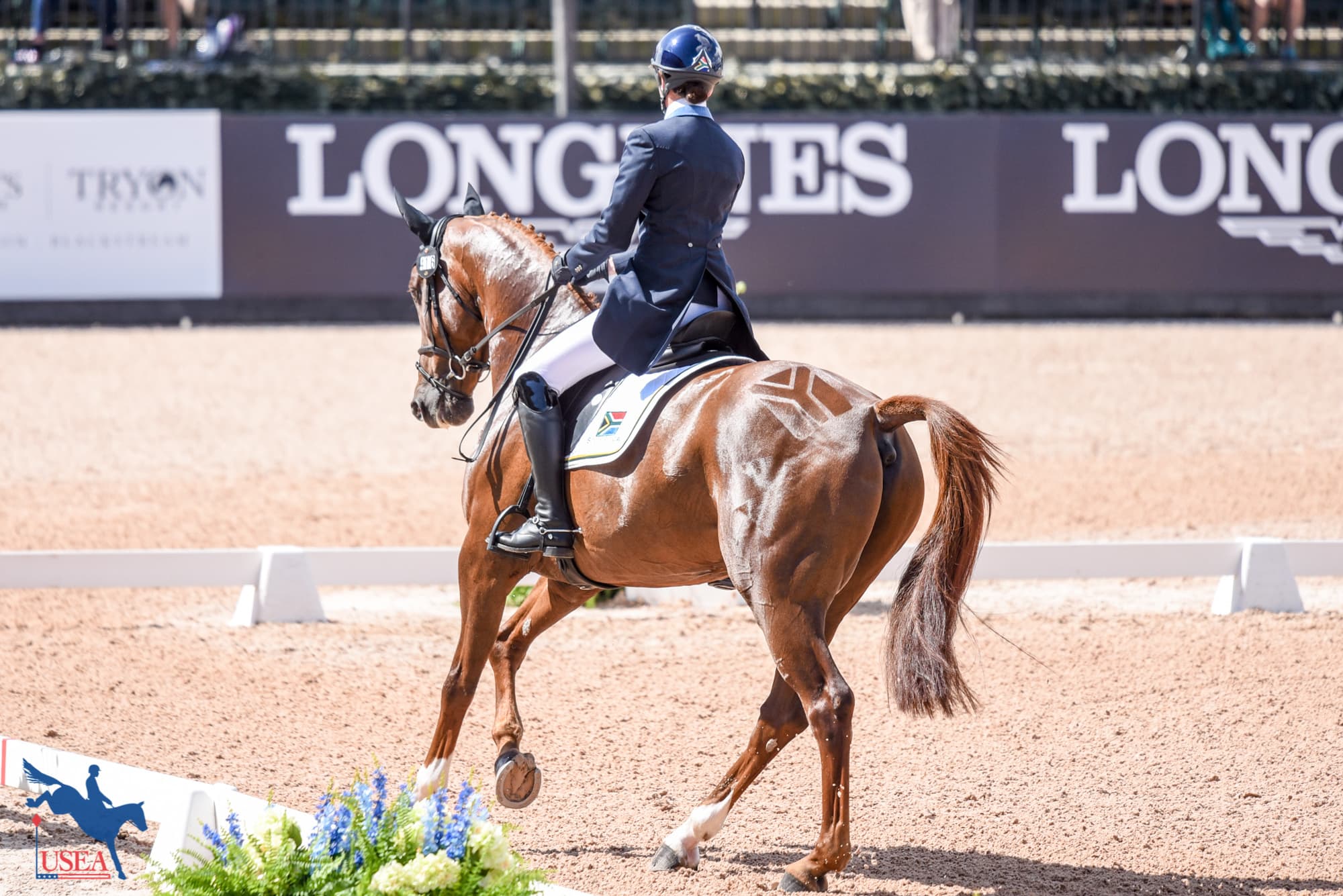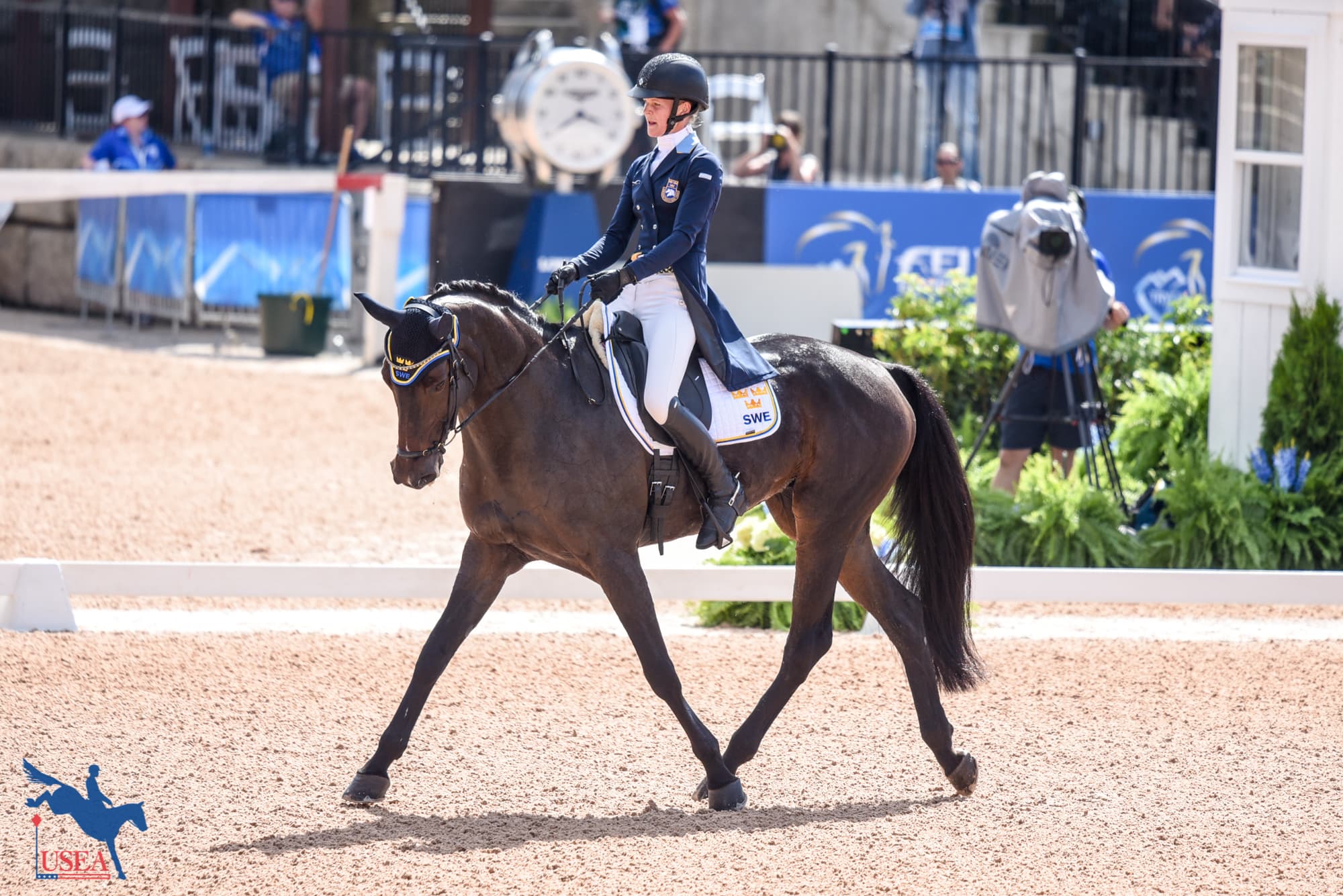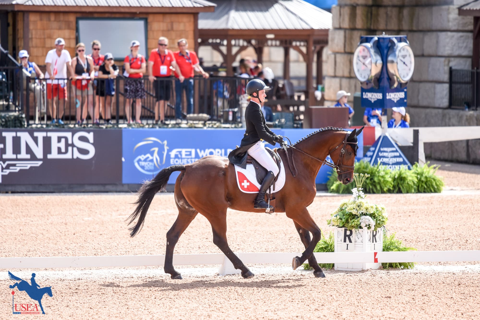 Hurricane Florence seemed like just a nasty rumor today at the Tryon International Equestrian Center in Mill Spring, North Carolina as the first day of competition in the FEI World Equestrian Games Tryon 2018 (WEG) eventing world championship got underway. Dressage judges Anne-Mette Binder (DEN), Andrew Bennie (NZL), and Jane Hamlin (USA) saw the first 42 horses in the 83-horse field canter down centerline over the course of the day. The afternoon’s competitors produced some impressive tests with seven combinations dancing their way into the top 10 after the lunch break.