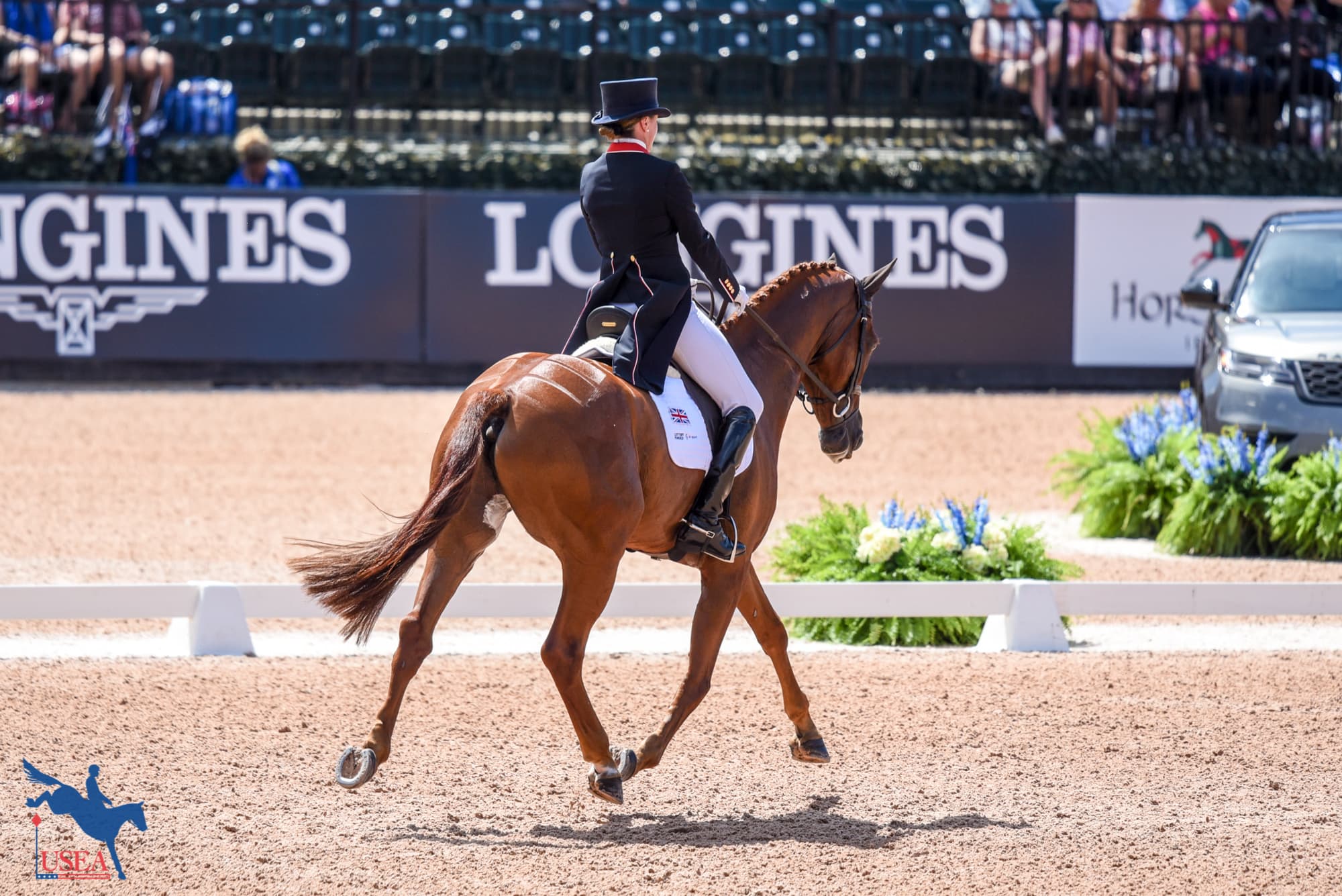 “It’s great to be here, it’s what we do it for,” French commented. “He’s a really cool horse, he’s still not the most experienced and there’s still more to come from him but he’s got an amazing brain and so you can be quite brave and I always give it a good go. I was delighted, we had one mistake at the beginning where he cantered out of the first halt which is really annoying. It’s quite nice to nail an entry and get the judges thinking it’s good, so it took a little time to warm up a little bit but on the whole I’m delighted. I think he’s given it his all and that’s all we can do.