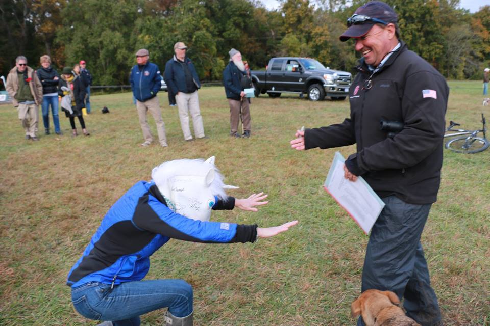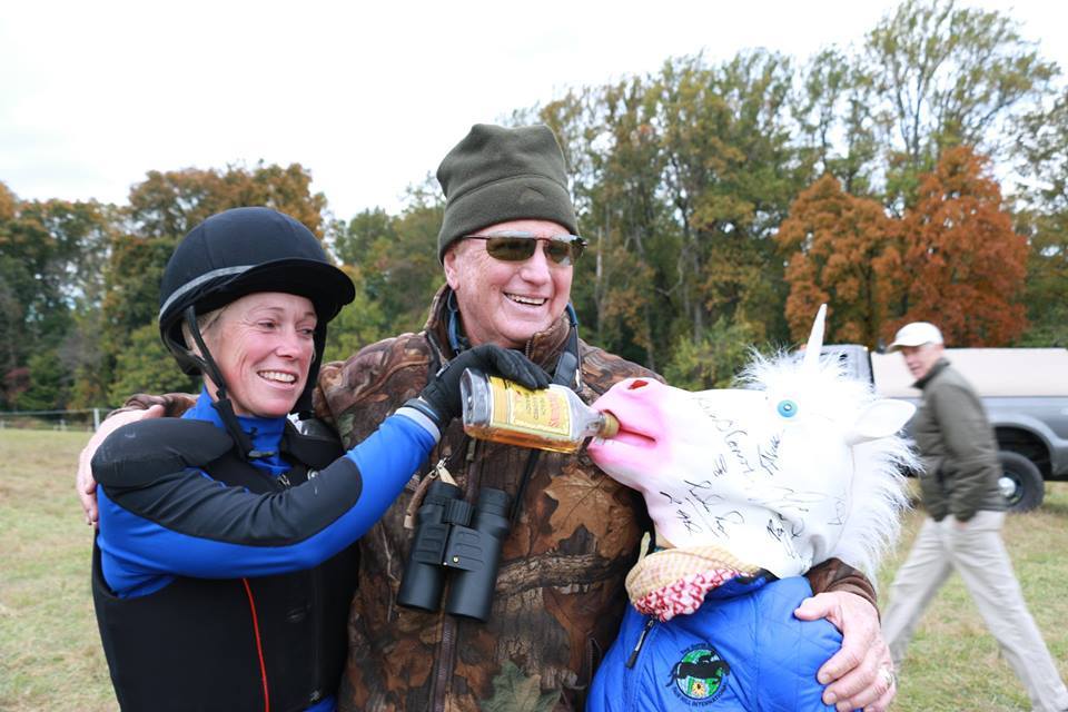We named the mask Uni, and her legacy lives on post-AEC. Amanda Merritt took the mask with her to Fair Hill International CCI3*, and had her autographed by/photographed with a bunch of big name riders. These included Jimmy Wofford, Colleen Rutledge and U.S. Chef d’Equipe David O’Connor (Pictured Below). We're going to take her to Rolex Kentucky CCI4* next spring to get more autographs, and then auction her off next summer to benefit a local Eventing facility owner and her special needs daughter. Uni has her own Facebook page and Instagram account full of photos of her adventures, and when she's auctioned off a book of those photos will accompany her to her new home.