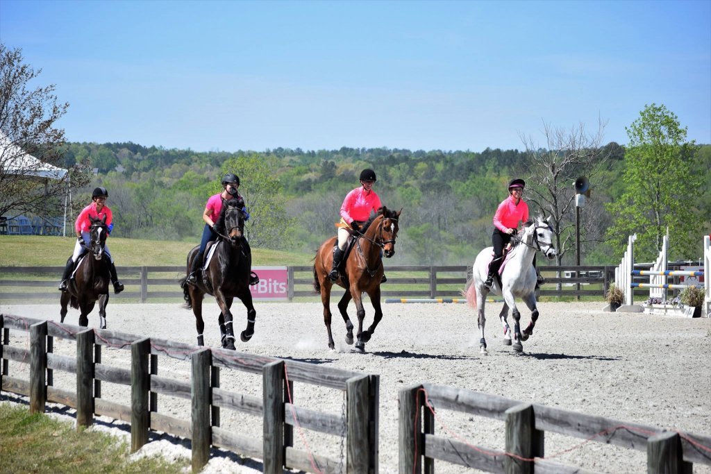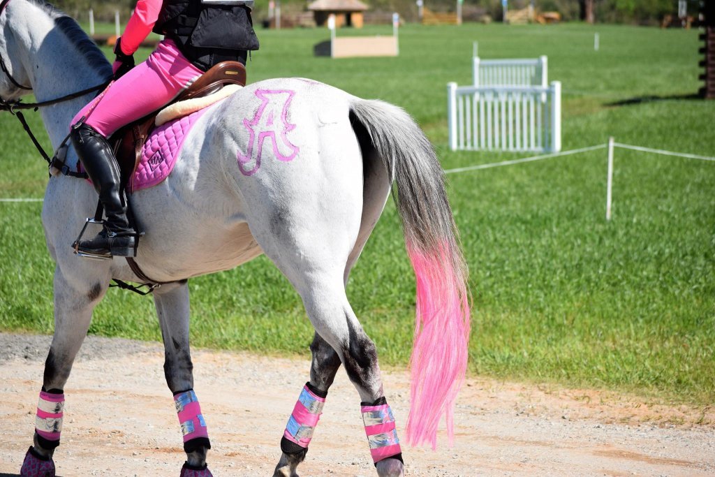 The University of Alabama eventers looked pretty in pink as they accepted their first-place ribbons. Emblazoned in vibrant colors, the team traded in their traditional crimson and white for pink to raise awareness and funds for breast cancer research. “We did the ‘Power of Pink’ to raise awareness and money for breast cancer research. Lots of other teams at Alabama – like women’s rowing and gymnastics – do a Power of Pink event once a year, and we figured it would be great to join in!” said team member Meagan Majchszak.