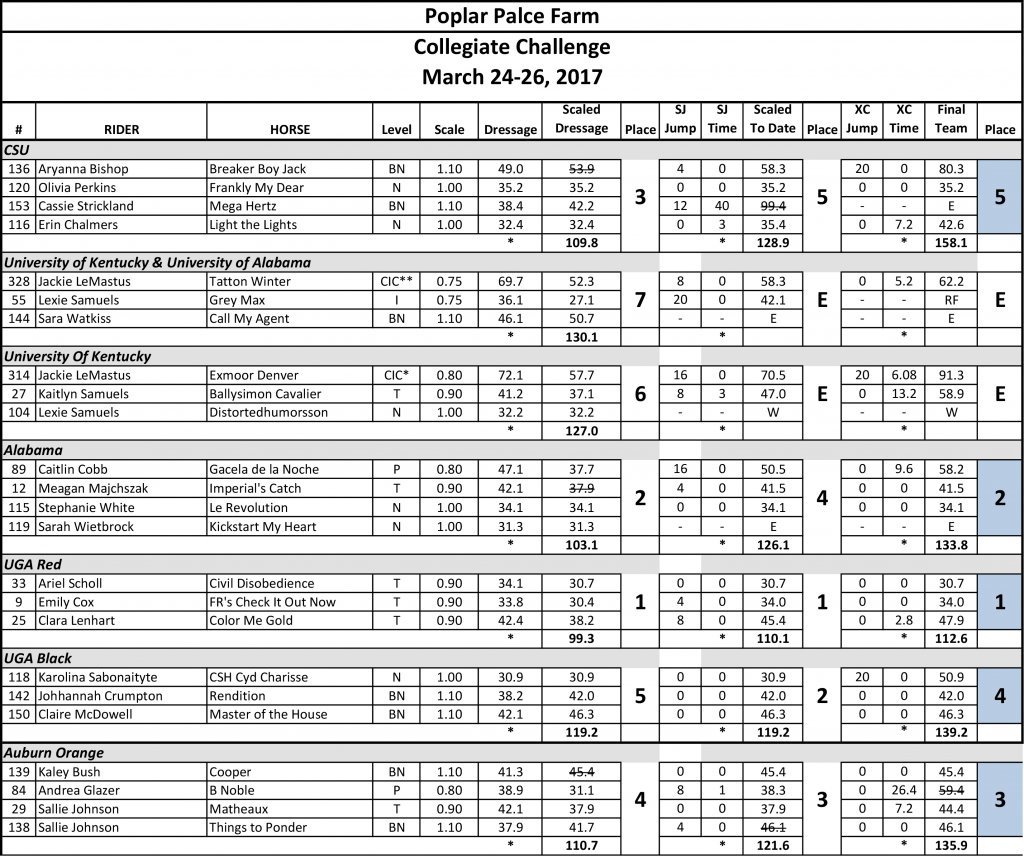 “After a long weekend of competing, I was ecstatic to learn that the UGA Red Team won the Poplar Place Intercollegiate Team Challenge,” Cox, who is also the team’s president explained. “The Red team led the team challenge from start to finish. After dressage on Friday, we were all unsure of what the team standings would be like. At the end of dressage day, we realized we were leading the intercollegiate competition with less than 4 points separating us from second place.”