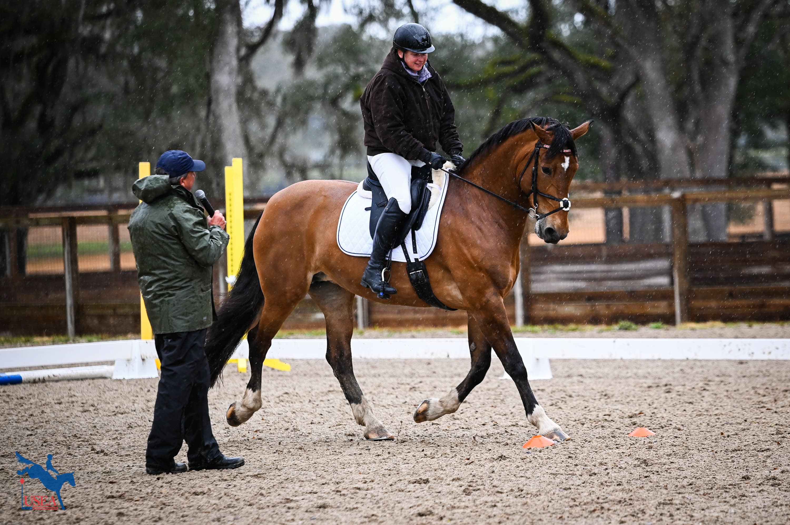 Day one of the newly revamped schedule consisted of both dressage and show jumping demos from riders who compete from Starter level through Preliminary. Participants were broken out into groups and worked with rotating ICP faculty throughout the day to assess individual riders and create lesson plans tailored to each riders’ needs. Groups were selected at random to have their ICP faculty member facilitate that lesson to the rider, allowing participants the opportunity to witness several different teaching styles in action.