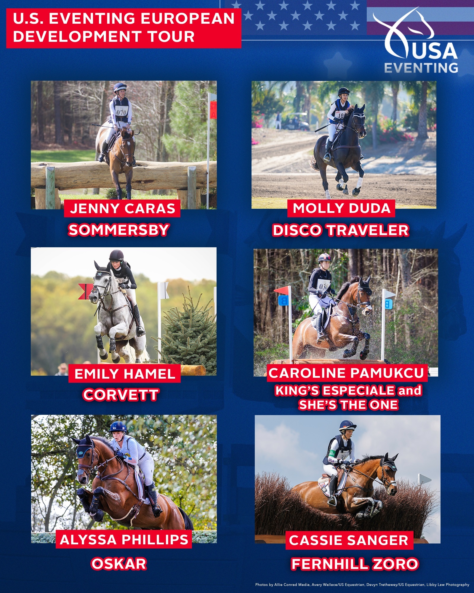 US Equestrian is pleased to announce the athlete-and-horse combinations that have been selected for the U.S. Eventing European Development Tour for the spring of 2024. USEF Eventing Emerging and Development Coach Leslie Law will guide the combinations as they experience team competition in Europe.