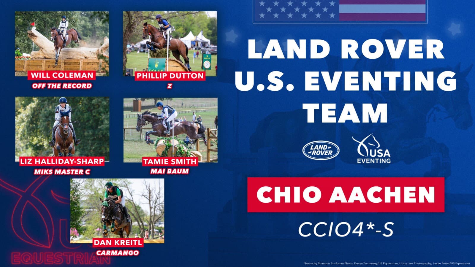 US Equestrian is pleased to announce the Land Rover U.S. Eventing Team and U.S. individual for the CHIO Aachen CCIO4*-S at CHIO Aachen World Equestrian Festival in Aachen, Germany, from June 30 – July 1, 2023. The U.S. combinations will be led by Chef d’Equipe Robert Costello.