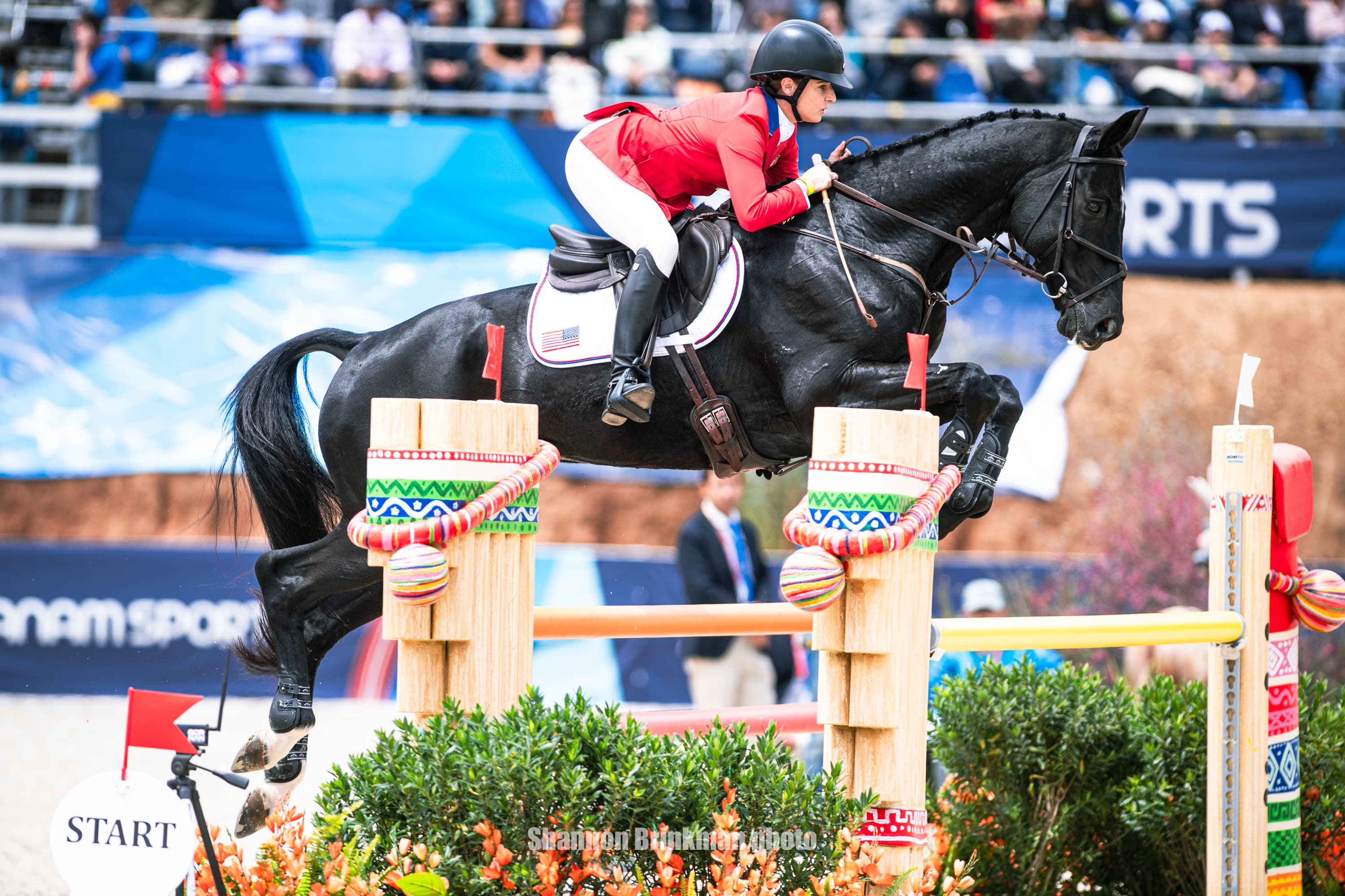 Pamukcu’s 8-year-old gelding Irish Sport Horse gelding HSH Blake (Tolan R x Doughiska Lass), owned by Mollie Hoff, Sherrie Martin, and Deniz Pamukcu, was looking really good until his 29-year-old rider saw a very long stride to the oxer at fence five and missed the distance to bring it down. The pair quickly recovered their composure, but team gold was gone and it would be the second step of the podium for the defending champions by an agonizing margin of just 0.1 penalty points when they completed on 115.7 behind the Canadians on 115.6.