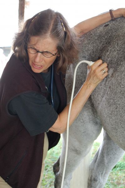 Dr. Catherine Kohn working at the first Cardiopulmonary study in 2009. USEA/Leslie Mintz Photo.