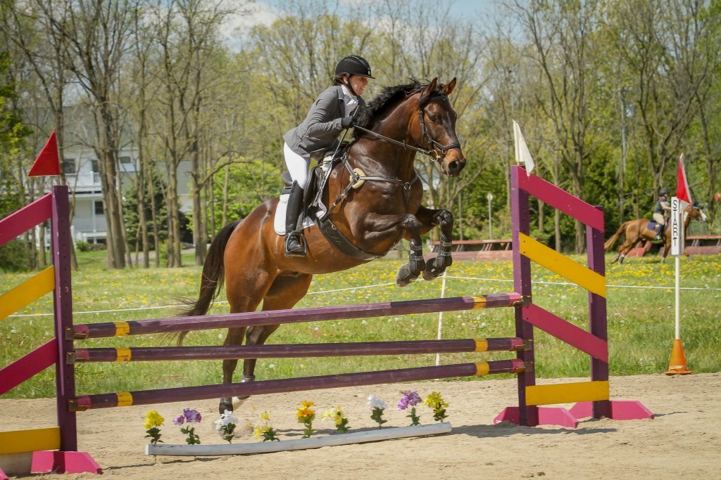 Honey Run’s cross-country courses run through three large fields over gently rolling terrain, making for an excellent spectator experience because so many of the jumps are visible. Merrick-Brooks described how the water jump, which is in a central location excellent for spectating, was refurbished a few years ago and has different options for every level. “Even though we’re so close to Ann Arbor, you would never know it,” she said. “There are trees all around the exterior and you can’t see anything major or even hear the highway.”