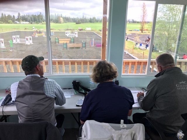 Spokane Sport Horse Farm sits five miles south of Spokane on the edge of the rolling Palouse Hills. “There are lava outcrops throughout the property, pine trees, and fields,” Carlson detailed. “A ridgeline offers good gallops up and down. Plenty of room for portables and parking with almost 100 permanent stables. We have a formal long dressage court, large indoor, two round pens, and a large fenced outdoor for warmup. We added a control tower and large outdoor jump arena since we started our events. We can now run four dressage arenas and Introductory to Advanced/Intermediate levels."