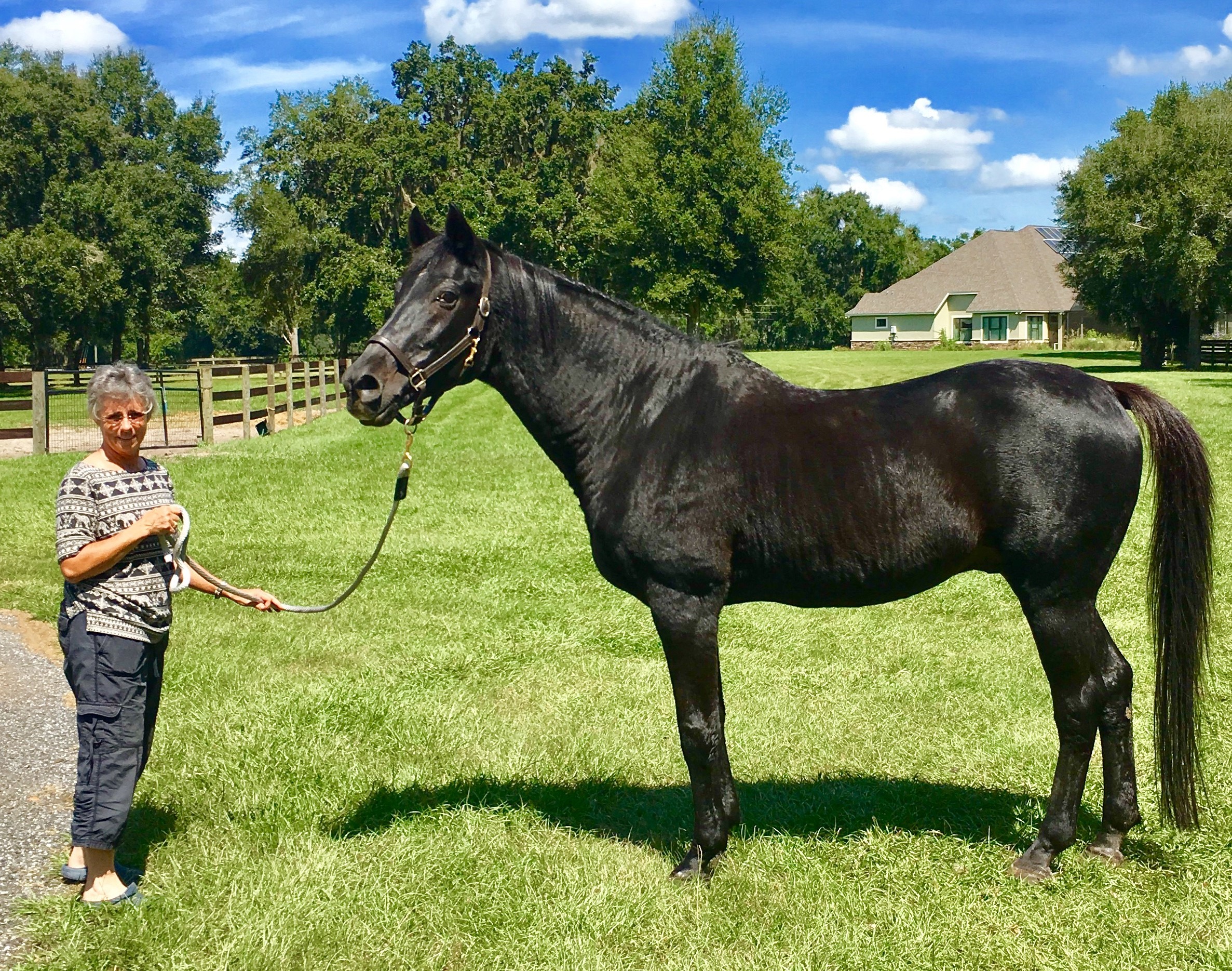 Windfall II, owned by Tim Holekamp, is a 27-year-old Trakehner stallion sired by Habicht and out of Wundermaedel. In 2004, Windfall II and Darren Chiacchia won the Kentucky Three-Day Event and went on to represent the United States in the 2004 Olympic Games to help secure team bronze. Accumulating 1,281.5 points over his eventing career, Windfall II is third on the list of USEA’s historical high point standings. Now retired at Tim and Cheryl Holekamp’s farm in Ocala, Florida, Windfall II enjoys chewed up carrots from Cheryl and relaxing hacks around the farm.