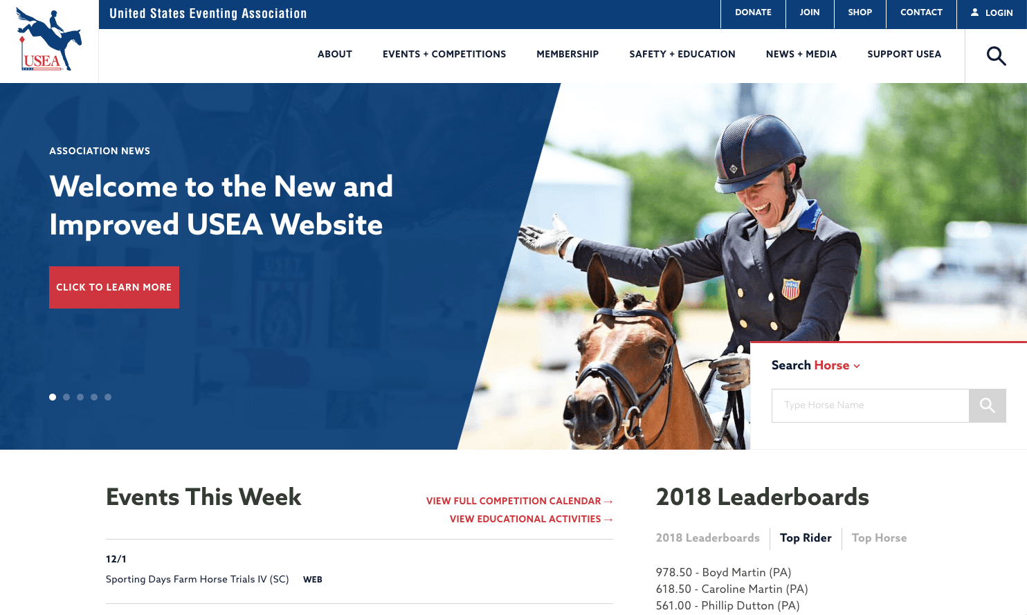 “The USEA media staff analyzed the online traffic on www.useventing.com and have gone to great lengths to make the more popular parts of the website easier to access,” said USEA CEO Rob Burk. “The horse and rider search, the calendar of events, and simplifying the new eventer experience by better promoting www.discovereventing.com are some of the more noticeable changes. Those now appear front and center on the home page."