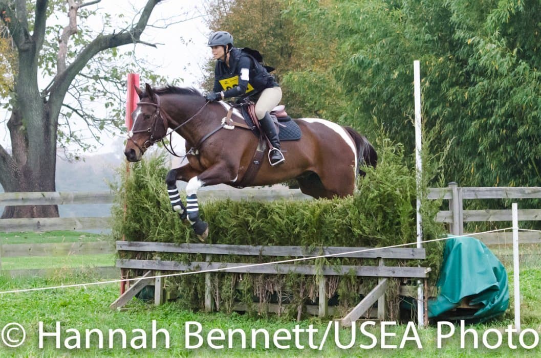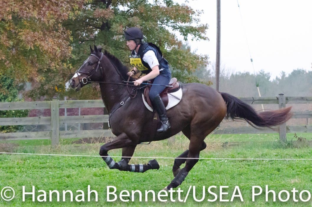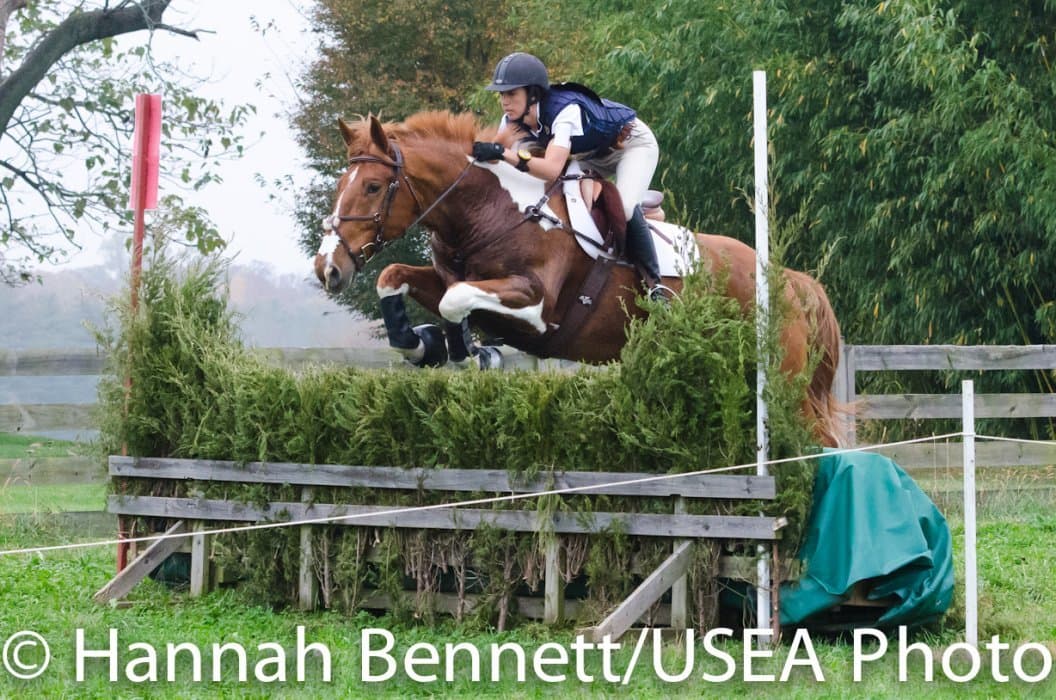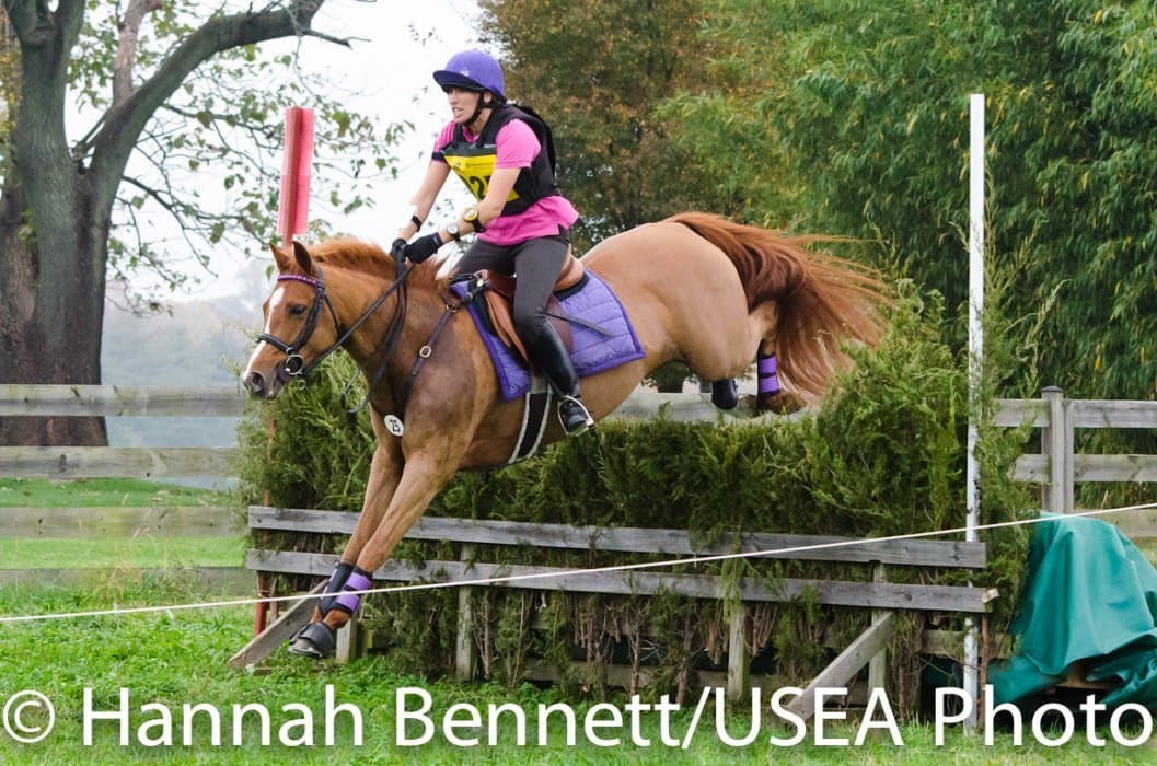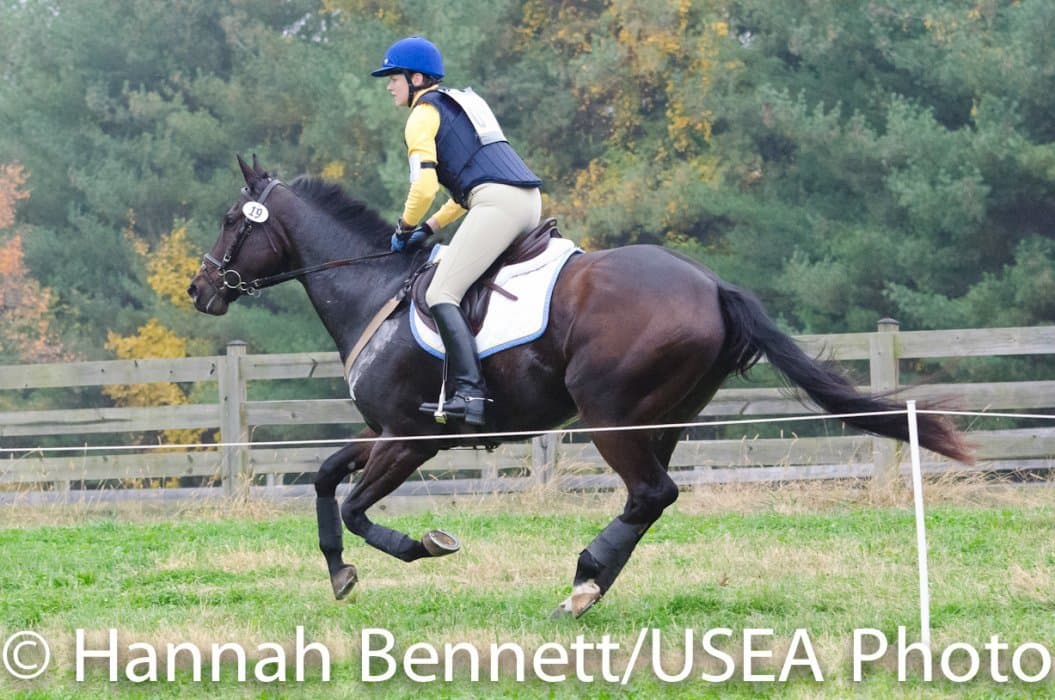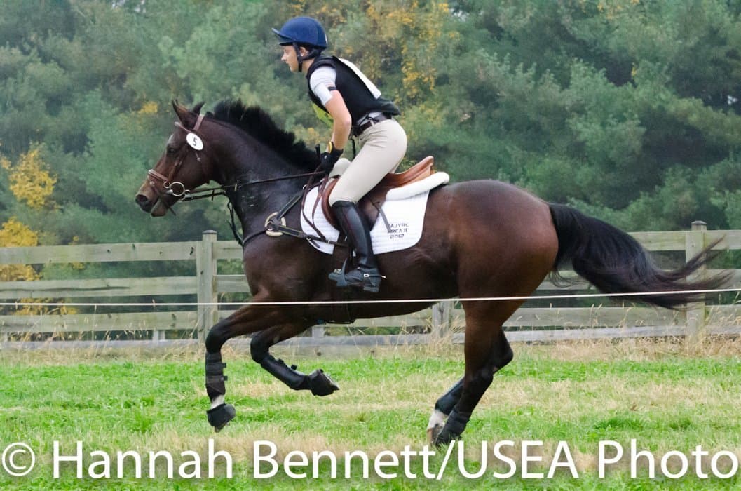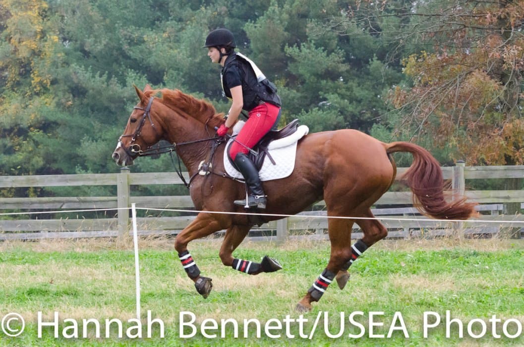 Demands on horse and rider are rigorous during cross-country day of a classic-format 3-day, and Bibeau had her work cut out for her when she set her sights on this particular competition. “I did a lot of conditioning,” she said. “Near my barn, there’s a big preserve where there are a lot of hills, so I’d trot around that for a good twenty-five minutes, then I’d canter around each way for three minutes, and just made sure to go up and down the hills. He’s getting stronger and he definitely got fit.”