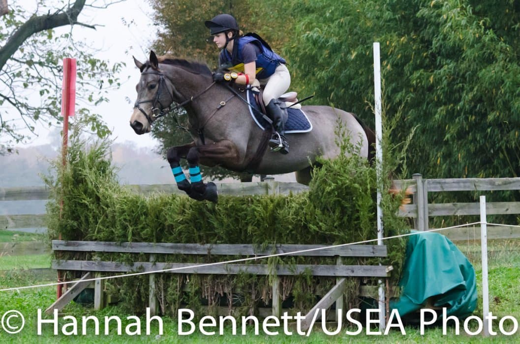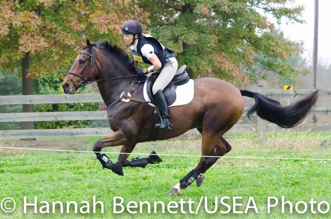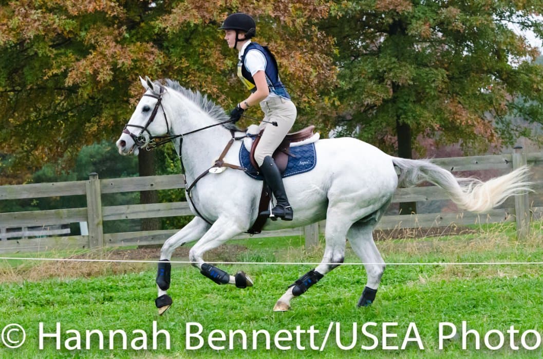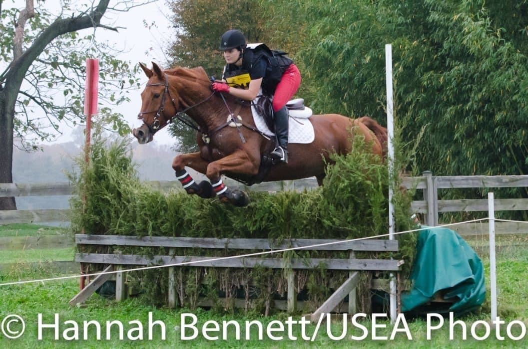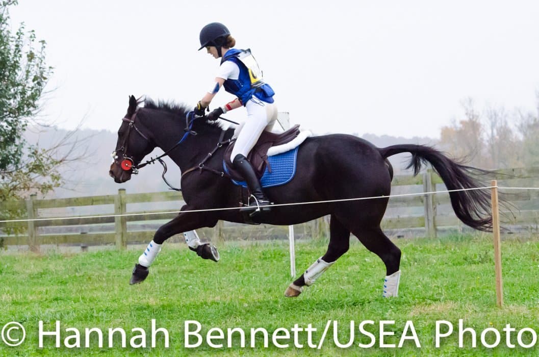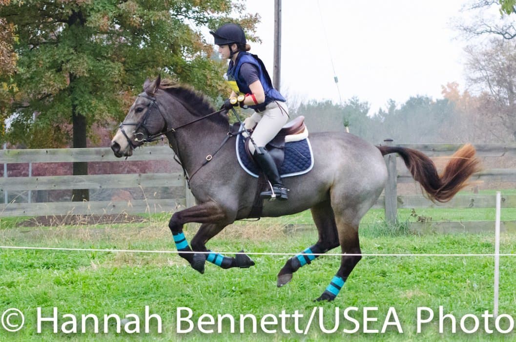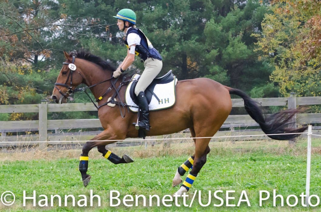 Demands on horse and rider are rigorous during cross-country day of a classic-format 3-day, and Bibeau had her work cut out for her when she set her sights on this particular competition. “I did a lot of conditioning,” she said. “Near my barn, there’s a big preserve where there are a lot of hills, so I’d trot around that for a good twenty-five minutes, then I’d canter around each way for three minutes, and just made sure to go up and down the hills. He’s getting stronger and he definitely got fit.”