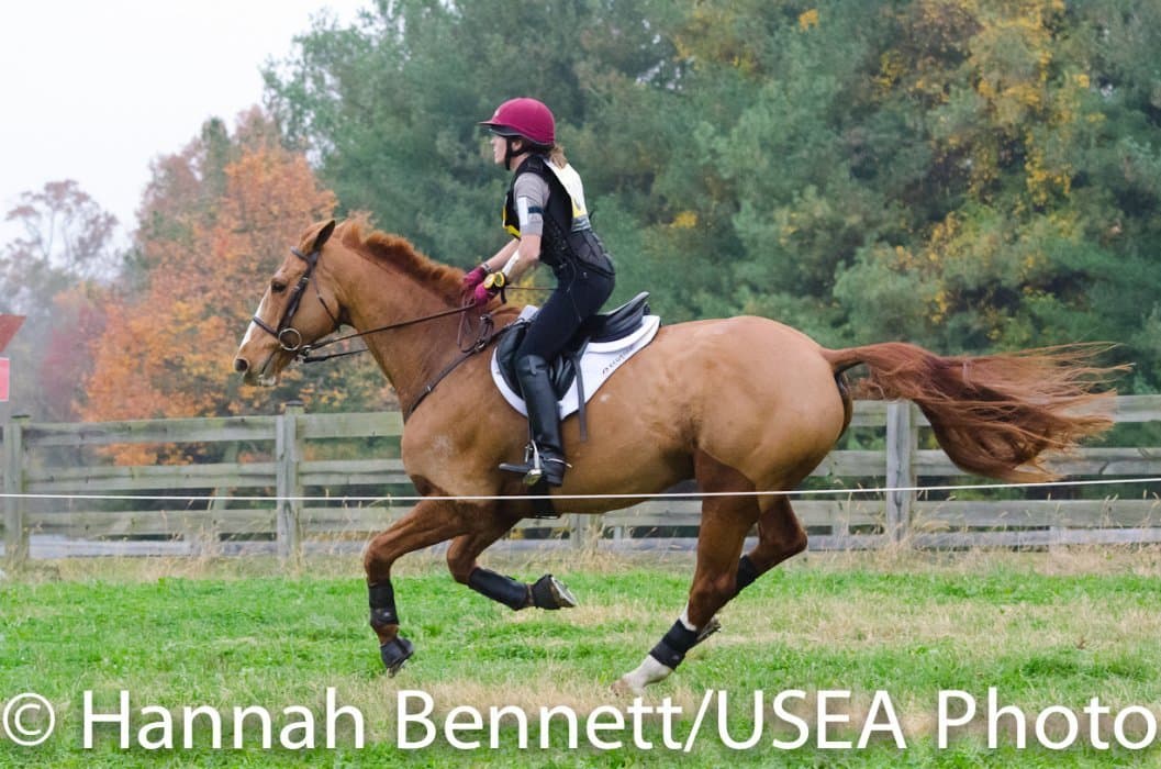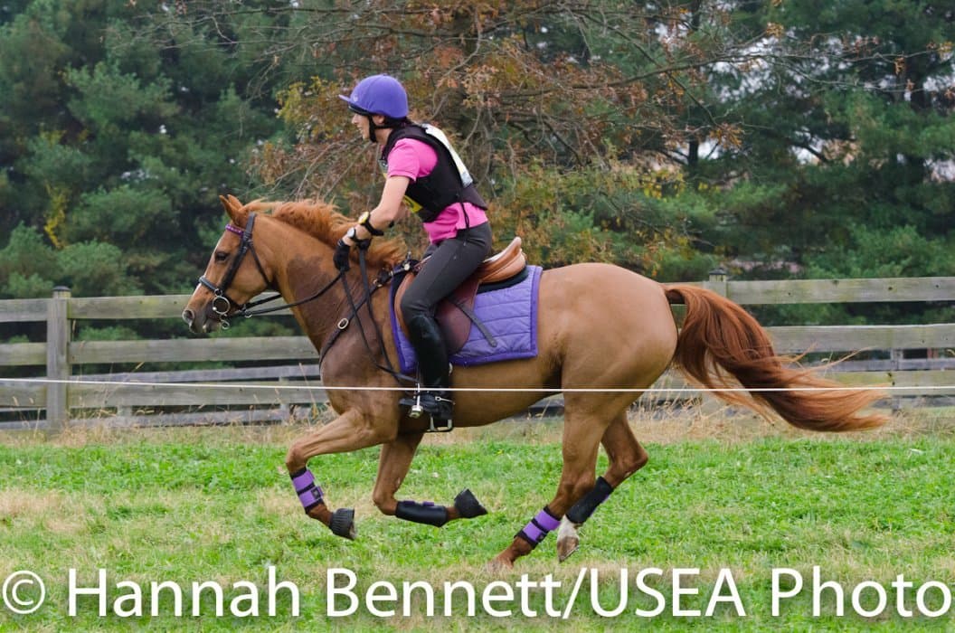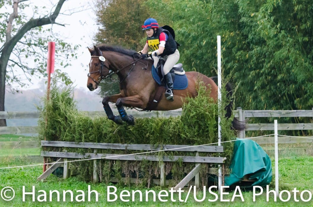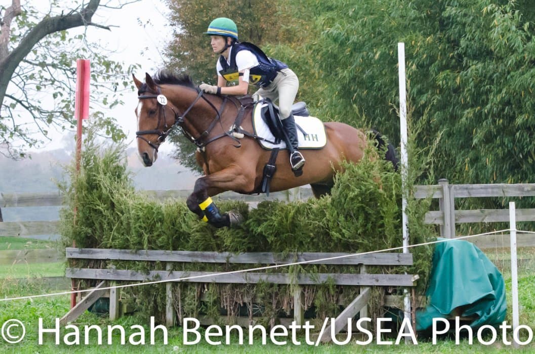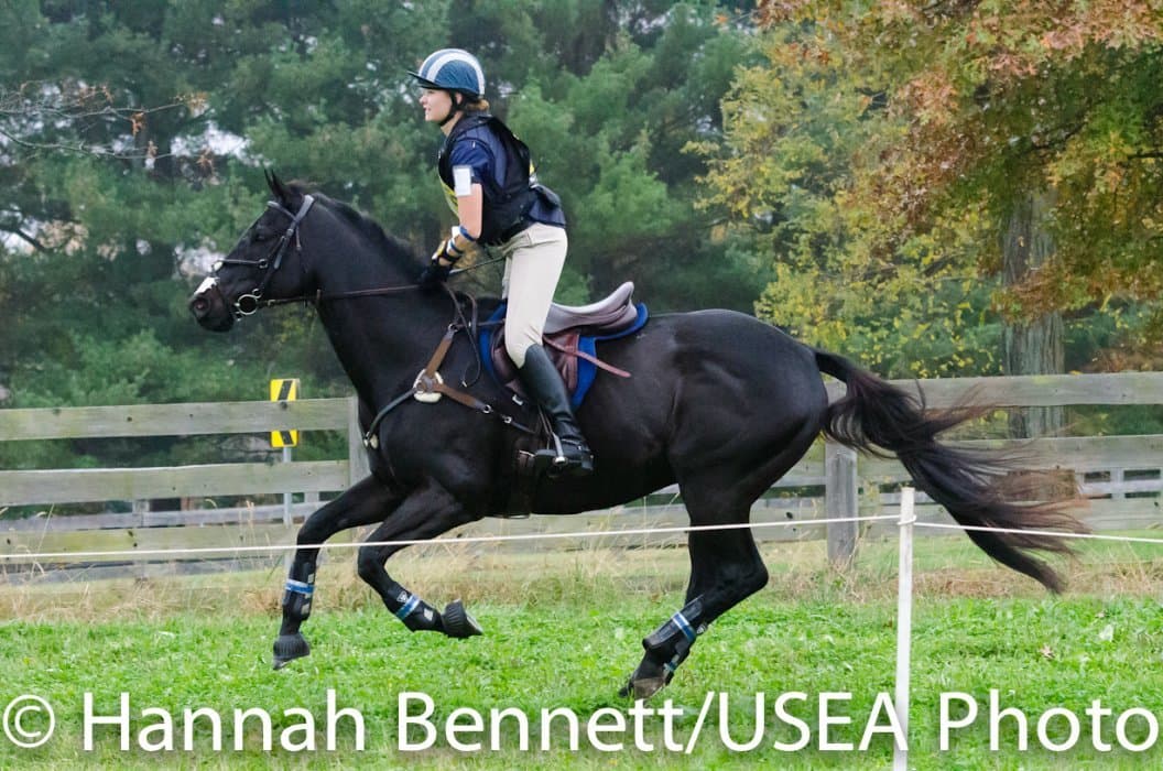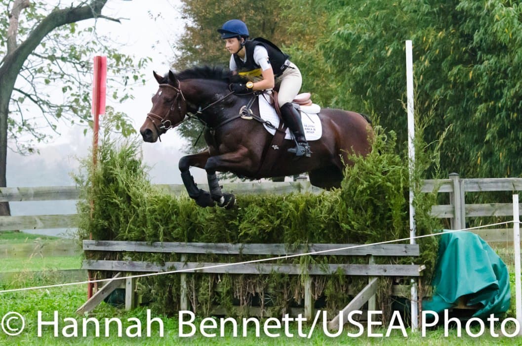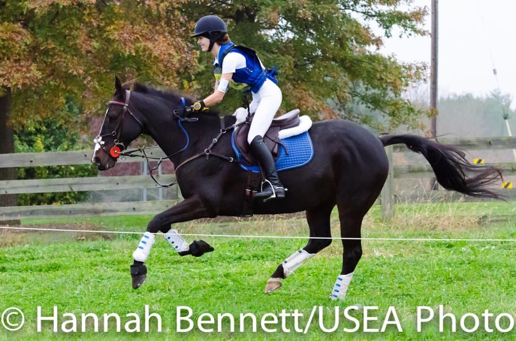 Demands on horse and rider are rigorous during cross-country day of a classic-format 3-day, and Bibeau had her work cut out for her when she set her sights on this particular competition. “I did a lot of conditioning,” she said. “Near my barn, there’s a big preserve where there are a lot of hills, so I’d trot around that for a good twenty-five minutes, then I’d canter around each way for three minutes, and just made sure to go up and down the hills. He’s getting stronger and he definitely got fit.”