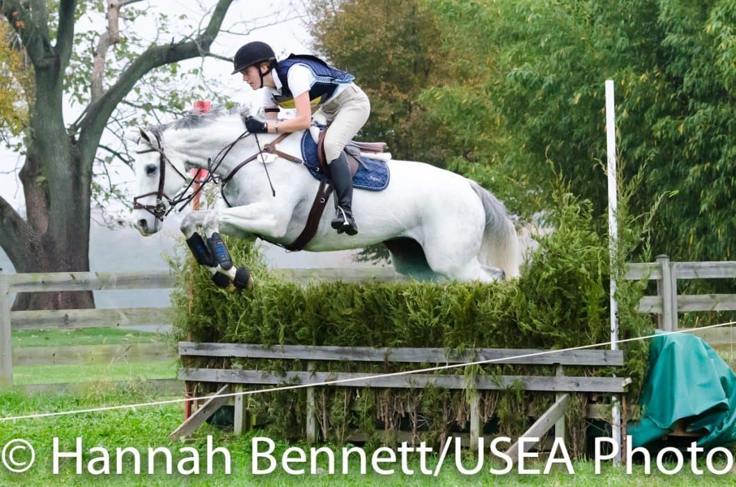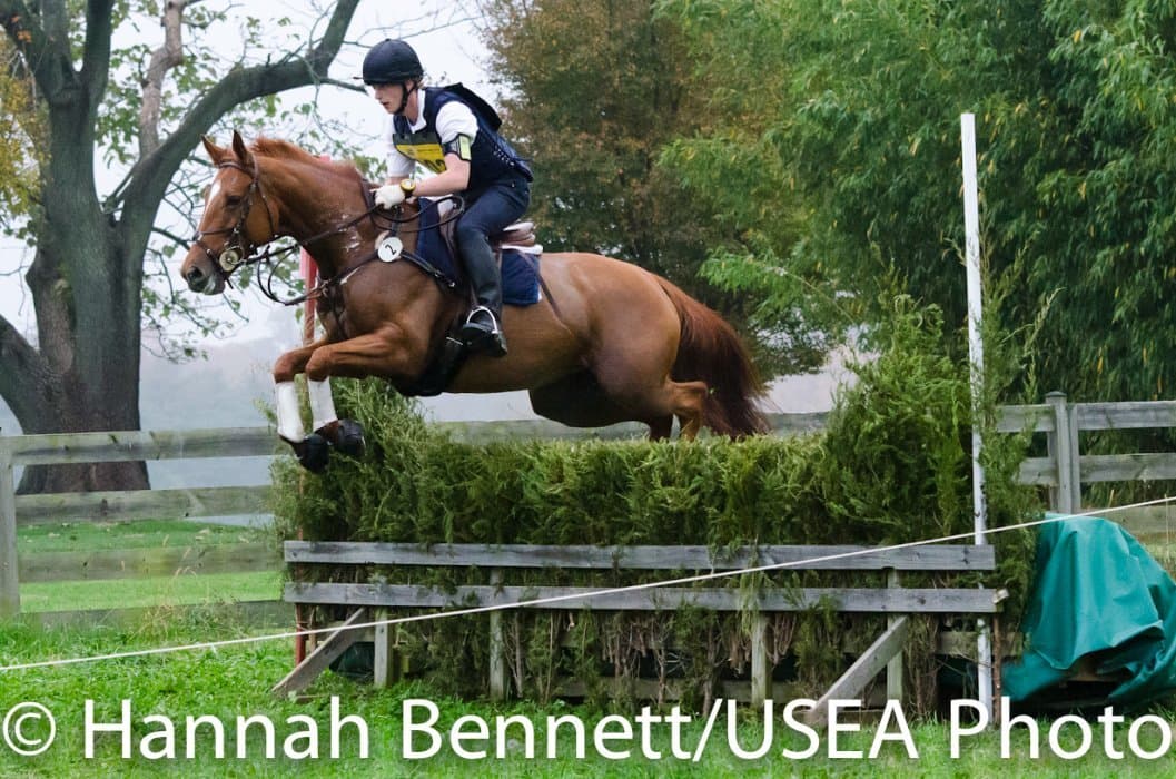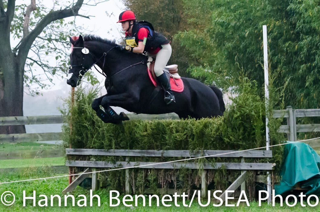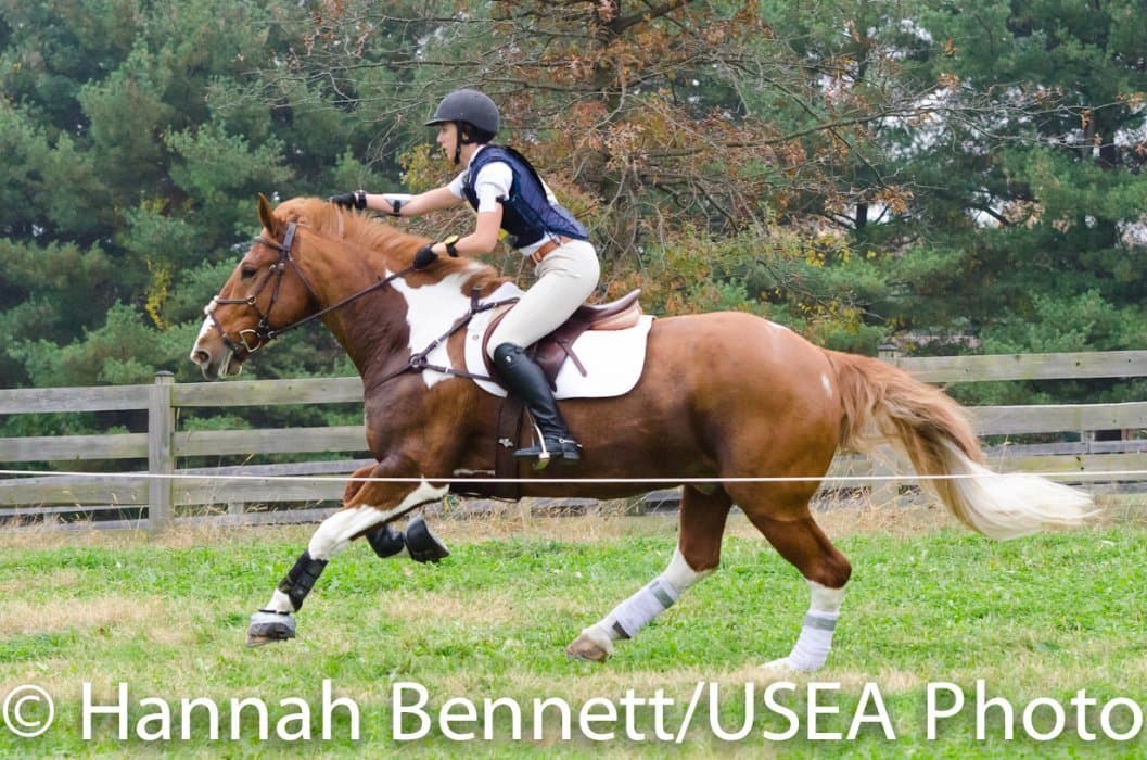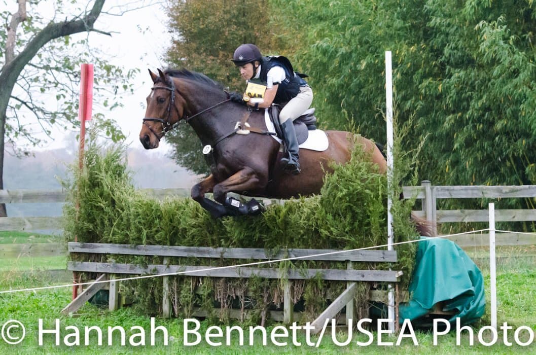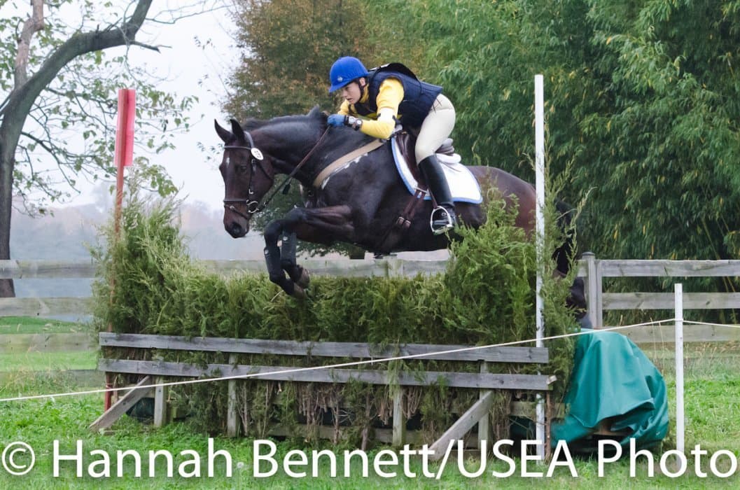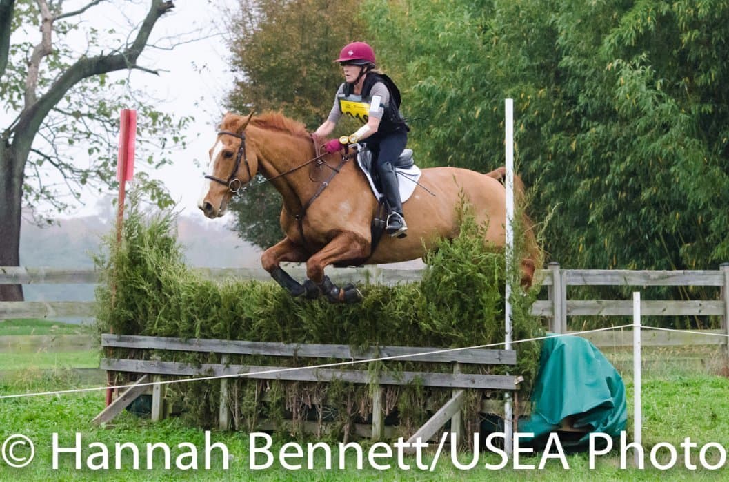 Demands on horse and rider are rigorous during cross-country day of a classic-format 3-day, and Bibeau had her work cut out for her when she set her sights on this particular competition. “I did a lot of conditioning,” she said. “Near my barn, there’s a big preserve where there are a lot of hills, so I’d trot around that for a good twenty-five minutes, then I’d canter around each way for three minutes, and just made sure to go up and down the hills. He’s getting stronger and he definitely got fit.”