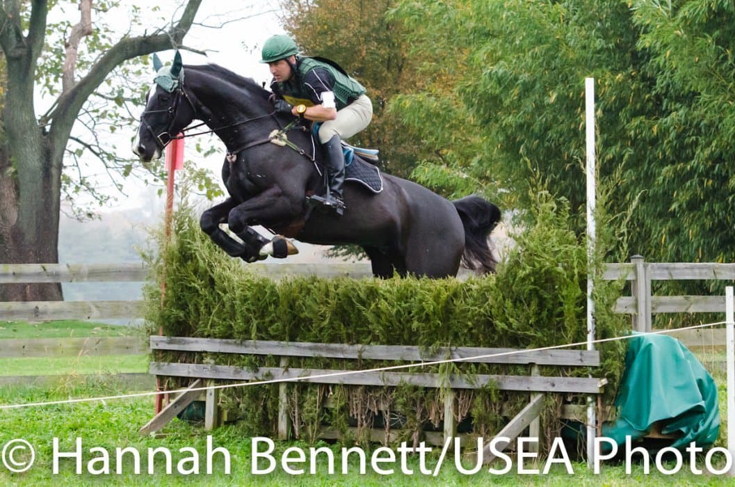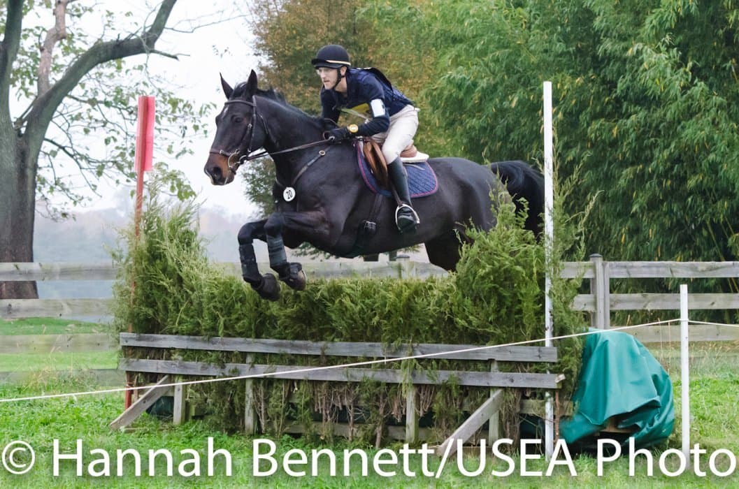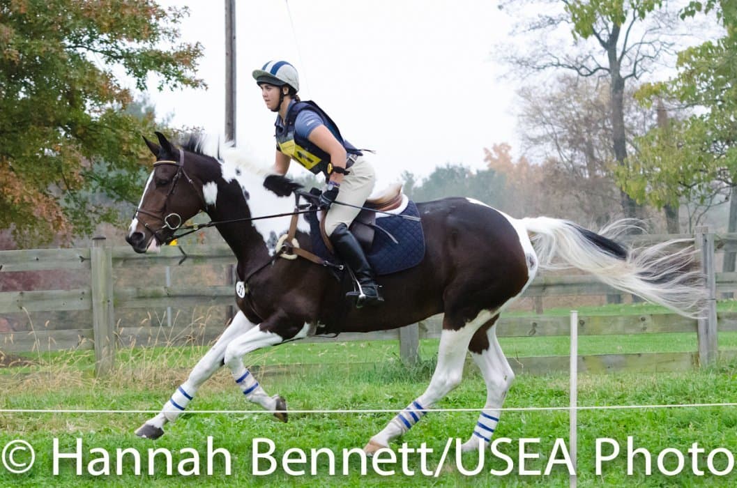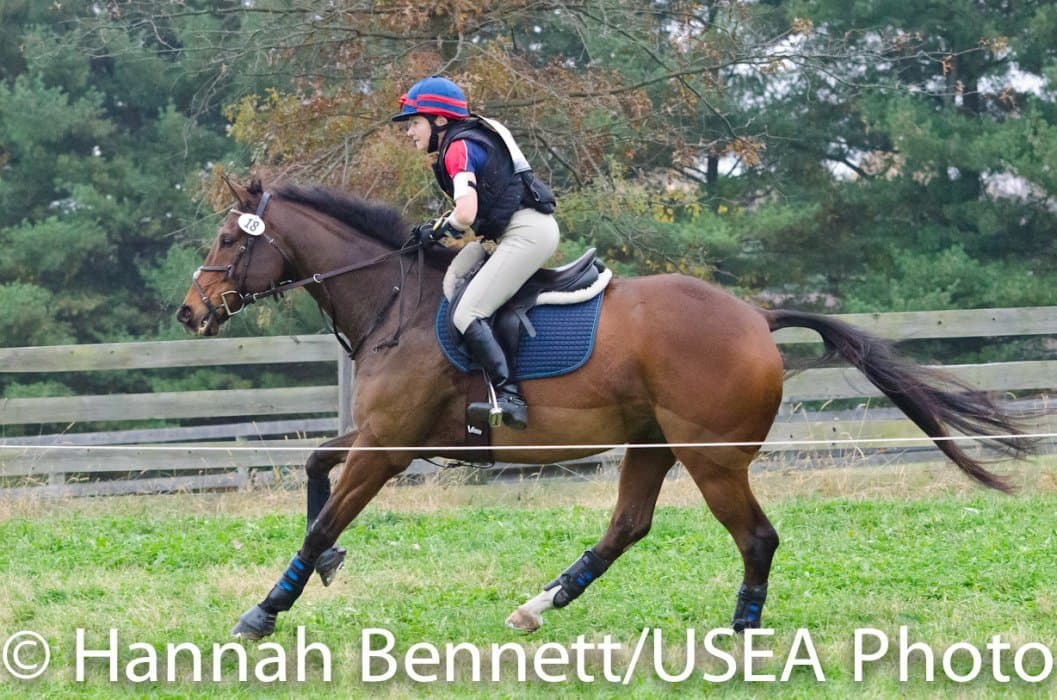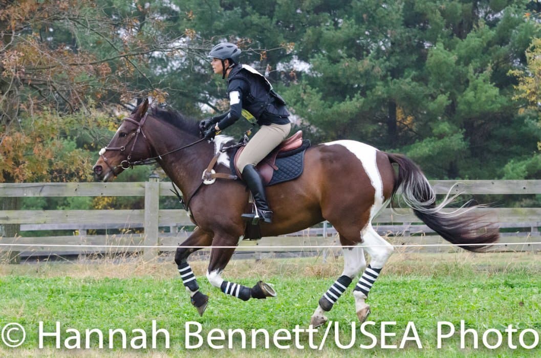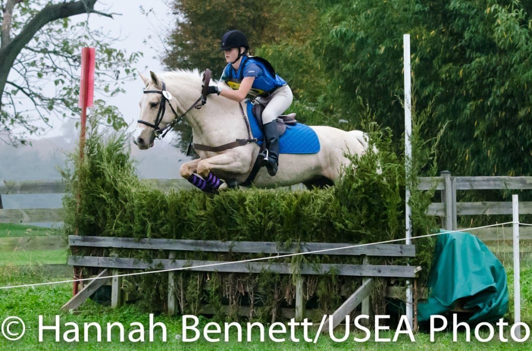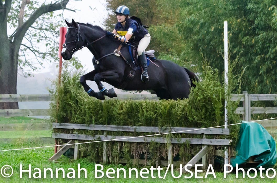 Demands on horse and rider are rigorous during cross-country day of a classic-format 3-day, and Bibeau had her work cut out for her when she set her sights on this particular competition. “I did a lot of conditioning,” she said. “Near my barn, there’s a big preserve where there are a lot of hills, so I’d trot around that for a good twenty-five minutes, then I’d canter around each way for three minutes, and just made sure to go up and down the hills. He’s getting stronger and he definitely got fit.”