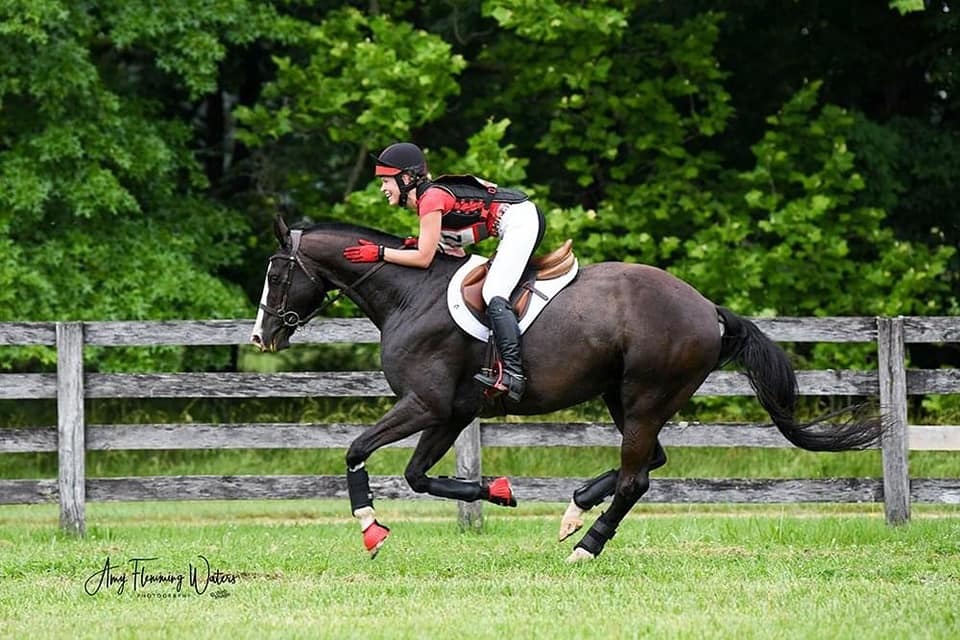 Samantha B: "What I love most about my mare Aurora Borealis is her heart. She was a horse that pushed me to be the best version of myself every time I sat in the saddle. Originally bought to be my upper-level jumper, a random day on a cross-country course showed us where she belonged. I took her from her first show to the Preliminary level! Shortly after her move up to Prelim, she got an ulcer on her eye which led us to find out that she was competing completely blind. This horse almost never had a cross-country penalty and has a gallop that dreams are made of. She taught me that eventing is truly about the partnership, and all my horses benefit from the lessons she taught me. Now she follows me around the paddock scouring for cookies, and I reminisce about the days I got to leave the startbox on her."
