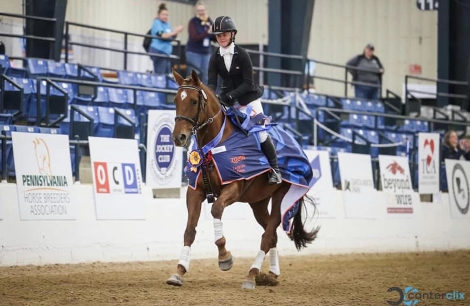 Jenna D: "I got Bailey a year ago, and we competed at the 2022 Retired Racehorse Project for eventing and dressage in which we took first overall for eventing, second dressage, and overall champion. She was my first ever solo project horse along with my first time at the Makeover. I love Bailey because she's full of talent. She has her quirks and chestnut mare sass, but her talent 100% overpowers that. She has taught me how to be patient with the training process. When I first got Bailey, she was not very eager to go forward. She didn’t have the gaits I was hoping for. With a lot of muscle building, groundwork, and overall time and patience, she has quite the gait on her. Although she does live up to being a chestnut mare, I admire her heart. Bailey will always try her heart out for me, and that’s what I love most about her."