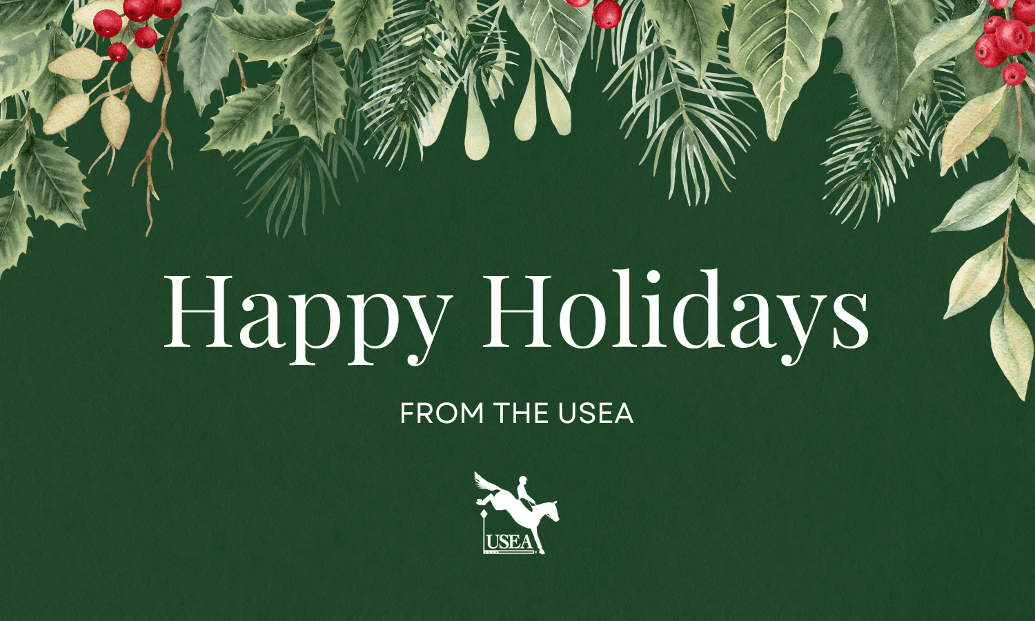 The USEA office will close at 5:00 p.m. EST on Friday, Dec. 20, 2024, and will reopen again on Thursday, Jan. 2, 2025. The USEA staff will return emails and phone calls when the office re-opens on Thursday, Jan. 2, 2025 or at their earliest convenience.