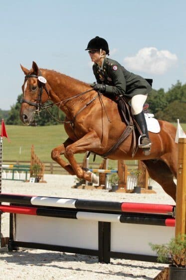 When I graduated high school, I went to the United States Military Academy at West Point. I also tried out for the Army Equestrian Team. I made the team every year and was even a co-captain my senior year. We competed in Hunt Seat Equitation in the Intercollegiate Horse Show Association, and I made it to Regionals every year and won sixth at Zonals one year. West Point certainly was not easy, but I never would have even considered it had they not had the Equestrian Team. Our team also has an extremely high rate of members staying in the Army for a full career rather than getting out after their first obligation. There seems to still be a connection for military horsemanship in our team. We even got to visit the U.S. Equestrian Team headquarters at Gladstone and sit in the judge’s box during a big dressage festival. We got to meet and talk with retired Captain John (Jack) Fritz, retired Major General Jonathan Burton, and others that shared our military and horse connections. I even won the Colonel Donald Thackeray Award before his death.