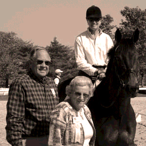 Winsome Adante (Saunter x Juswith Genoa) is owned by Ms. Linda Wachtmeister, was ridden by Kim Severson, and was bred in England by Janet and Chris Gooch. Dan, as he is called at home, made his mark on the sport of eventing from the beginning of his career. From 2000 to 2007 Dan competed in 47 competitions, placing in the top three in 39 of them.