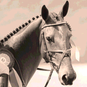 Dorothy Trapp Crowell found Molokai (Hawaii x Pretty Copy) fresh off the track as a 4-year-old. As green as he was, she knew from the moment she sat on him that he was exceptional to the point that she did not want to get off of him. Molokai had a very negative opinion of the dressage phase but his athleticism, his huge galloping stride, and his ability to jump anything before him would take him to the very top of the sport and see him bring home the individual silver medal from the World Equestrian Games in The Hague in 1994.