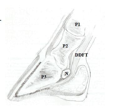 Navicular bursa: A fluid filled sac that sits between the navicular bone and the deep digital flexor ten-don, providing cushioning