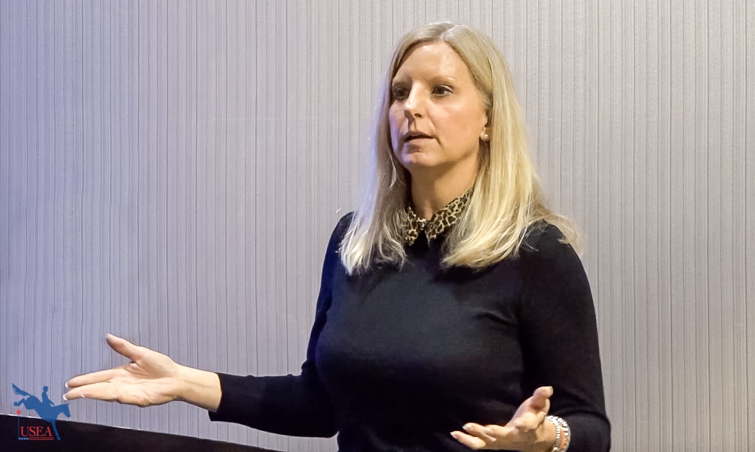 Sonja Keating, General Counsel for US Equestrian (USEF), led a session about SafeSport at the 2018 USEA Annual Meeting & Convention. Keating began the session with a summary of the changes to the SafeSport program that have taken place over the last year, covering changes in federal law as well as policies of the U.S. Center for SafeSport and the policies of the USEF. She also discusses the history of USEF’s policies to protect minor athletes and shares that a Task Force has been appointed to determine other safeguards that can be put in place to protect athletes that comply with SafeSport and are not an imposition to members.