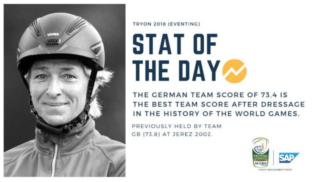 It’s worth noting that only two teams have been outside top three after dressage to win a team gold. Canada in 1978 and New Zealand in 1990, both teams sat in fifth after dressage. All other gold medal teams have been in a medal position after dressage. Trends say Germany, Great Britain, or the US for the 2018 title.