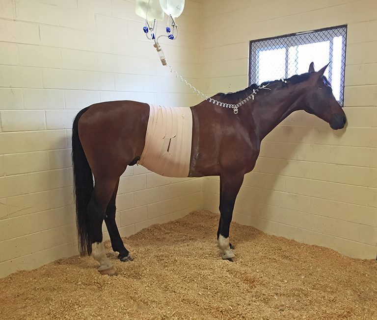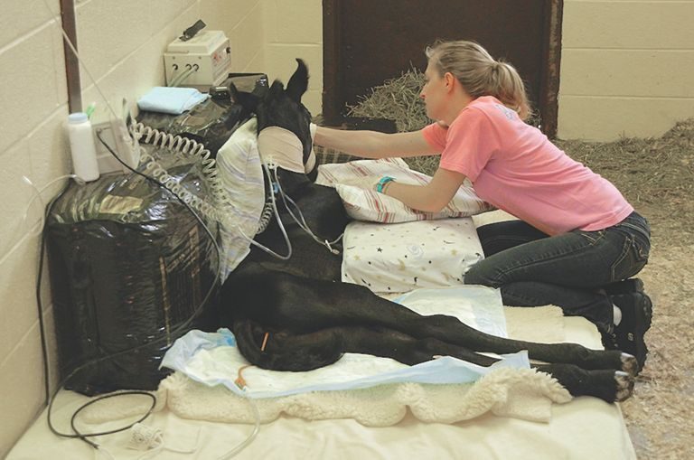 Critical care post-surgery also involves minute-by-minute monitoring of the horse by the hospital staff. “We’ve got to see how they’re responding to treatment and if they’re original presenting problem is still present then we either address it, treat it differently, or monitor it to its resolution.”
