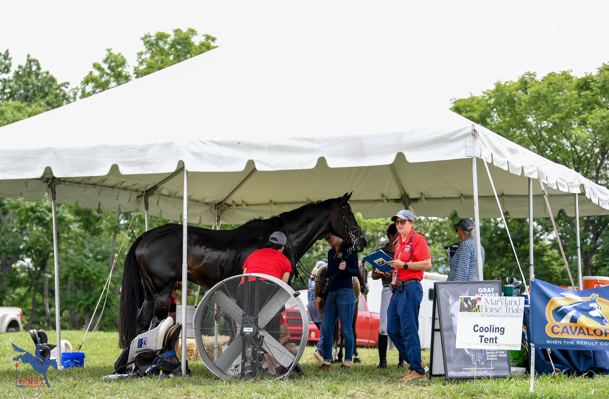 Across the nation in California, Gwin has all the tips and tricks for competing in the hot desert heat. “If it's super-hot, we will sometimes put rubbing alcohol in a bucket with some water and a sponge. And we might even sponge them down before they go cross-country, just to keep them cool. We might even have the bucket with the rubbing alcohol in the vet box for after, when it's super-hot.”