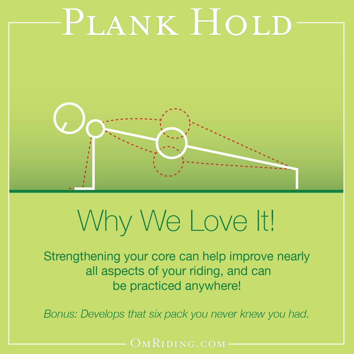 - Tones core and glutes - stabilizes your position in saddle.