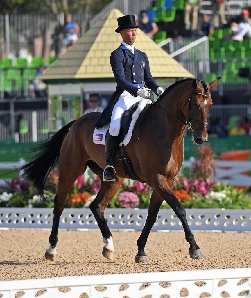 American rider Clark Montgomery riding his long-time partner Loughan Glen were second up for the U.S. team today. They put in a nice test, but with what appeared to be some bobbles in communication and concentration to score 46.6, which was good enough for 10th so far. Montgomery was visibly disheartened after their halt and our hearts went out to him, especially since all year they have scoring in the high thirties/low forties.