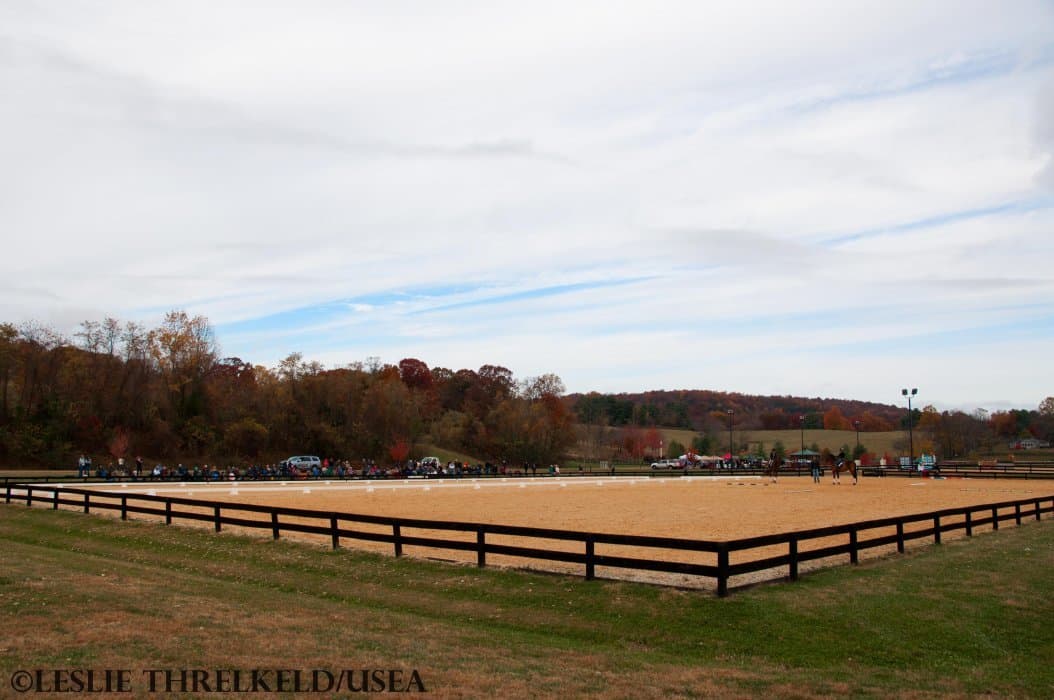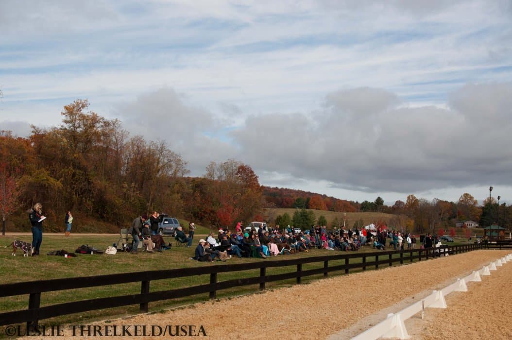 About 200 auditors, riders, sponsors, and vendors lined the arena early this morning to watch sixteen horse-and-rider pairs participate in what is, for most riders, a once-in-a-lifetime experience: to school under the watchful eye of William Fox-Pitt.