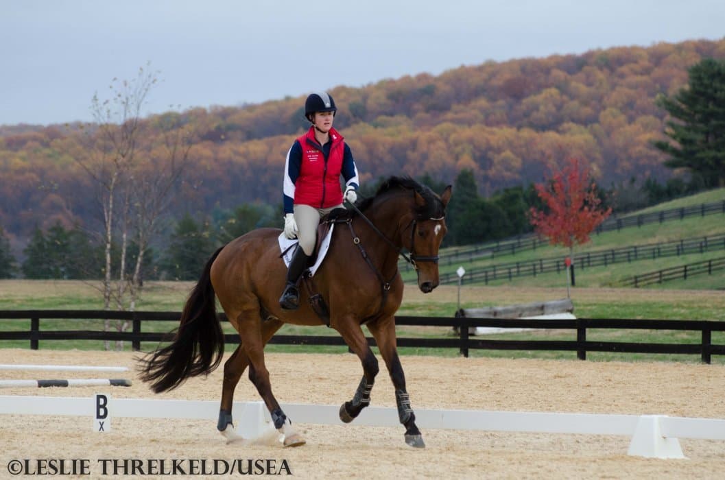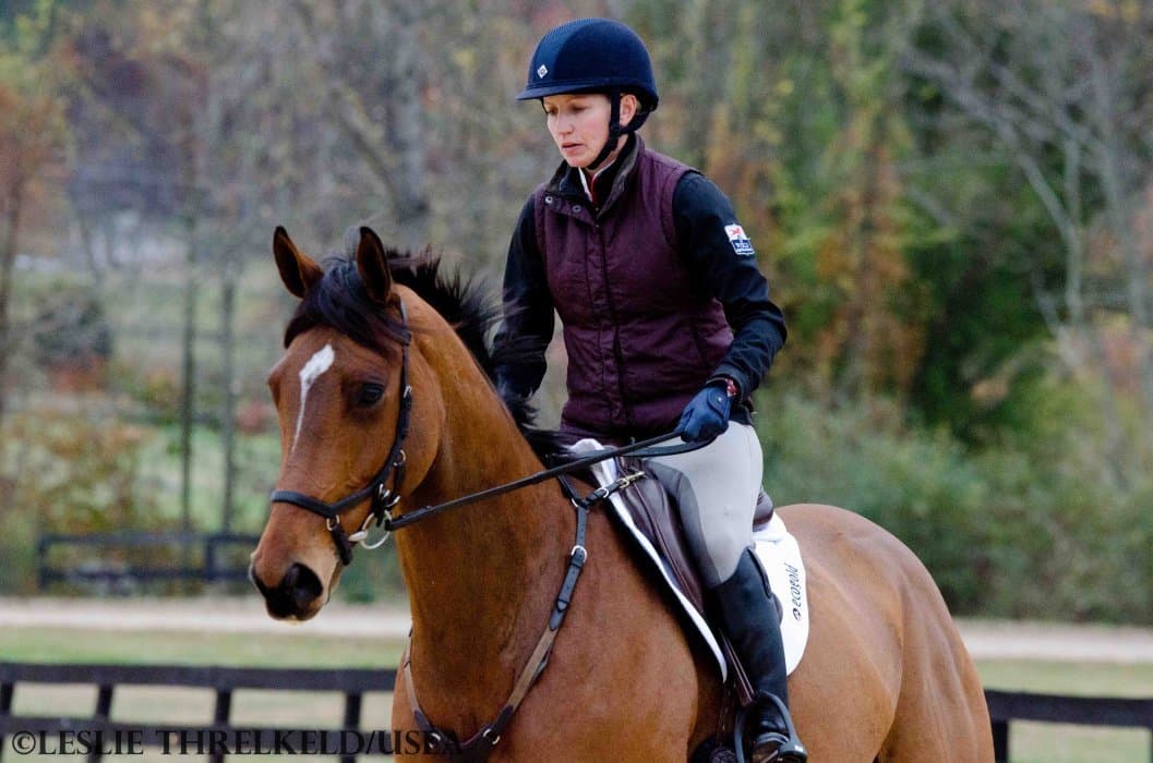 Kendyl Tracy on RF Cameron Velvet and Victoria Jessop on her CIC2* gelding, Desert Mystery or “Dez.” Jessop’s horse was more of a nervous type, and Fox-Pitt suggested using a “breathing leg,” on that type of horse – leg on for one stride, off for one stride, and so on. Tracy’s horse wanted to swap leads in the counter canter, so Fox-Pitt sent them out of the marked dressage arena, into more open space, to work. Both horses produced some lovely work under his guidance.