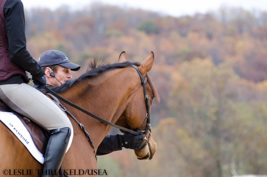 After the lunch break, Fox-Pitt taught the greener horses or riders in the Training-Prelim skill set. Malcolm Dilley and Nicole Kowalski, Lainey Ashker and Lisbeth Storandt, Chris Talley and Kristin Carpenter on their OTTBs, and Connor Husain and Skyeler Icke-Voss on their 4- and 5- year olds were the afternoon pairs.