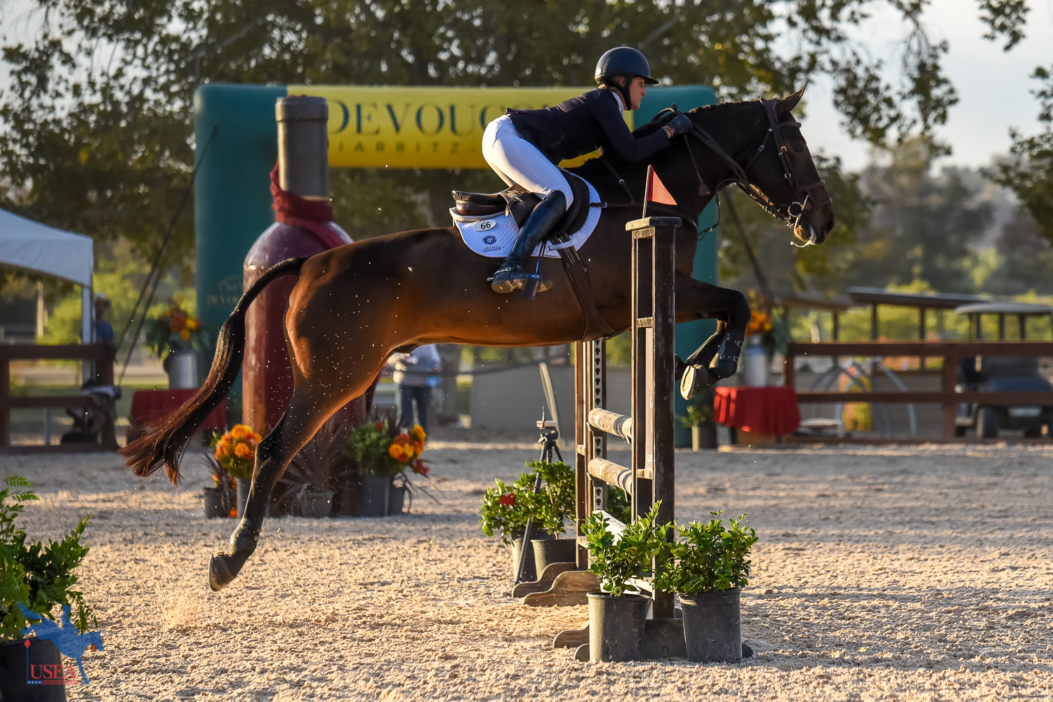Under the setting sun in the Grand Prix arena at Galway Downs, in front of the crowd gathered in the VIP tent, the 17 horses and riders competing in the Hylofit USEA Classic Series Training Three-Day show jumped to see who would take home the blue ribbon. No one could catch Whitney Tucker Billeter and Bill’s Midnight Magic (Espri x Rena Ramzi), John Herich’s 15-year-old Hanoverian gelding, who show jumped double clean to take home the win on their dressage score of 25.9.
