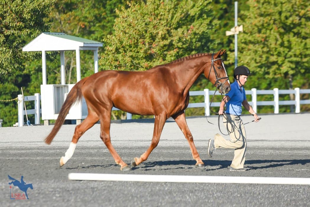 Katie Wherley’s Grateful Heart, 2017 first-placed 3-year-old Filly. USEA/Jessica Duffy Photo.
